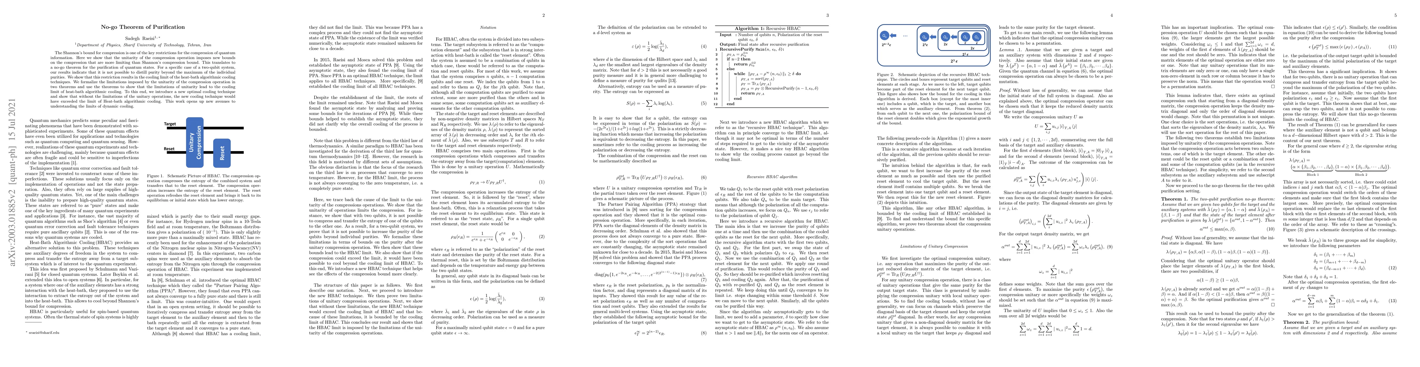 New bounds on quantum compression impose a no-go theorem for purification, showing that individual purities cannot exceed a certain limit; this restricts dynamic cooling techniques.