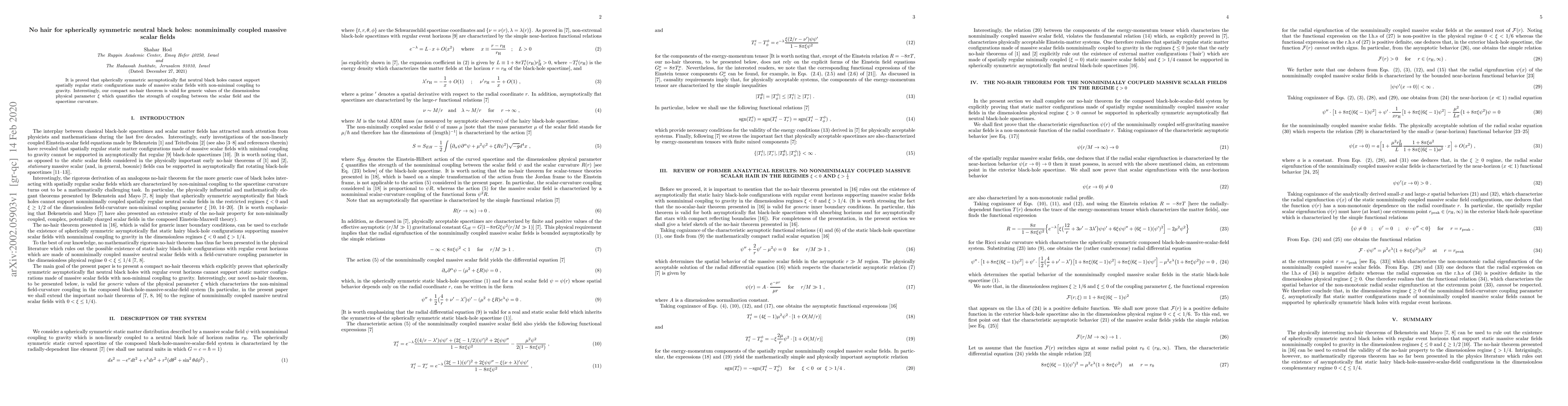 Summary: This paper proves that spherically symmetric neutral black holes cannot support static, spatially regular configurations made of massive scalar fields with non-minimal coupling to gravity, regardless of the coupling strength quantified by $\xi$. This no-hair theorem holds for generic values of the coupling parameter.