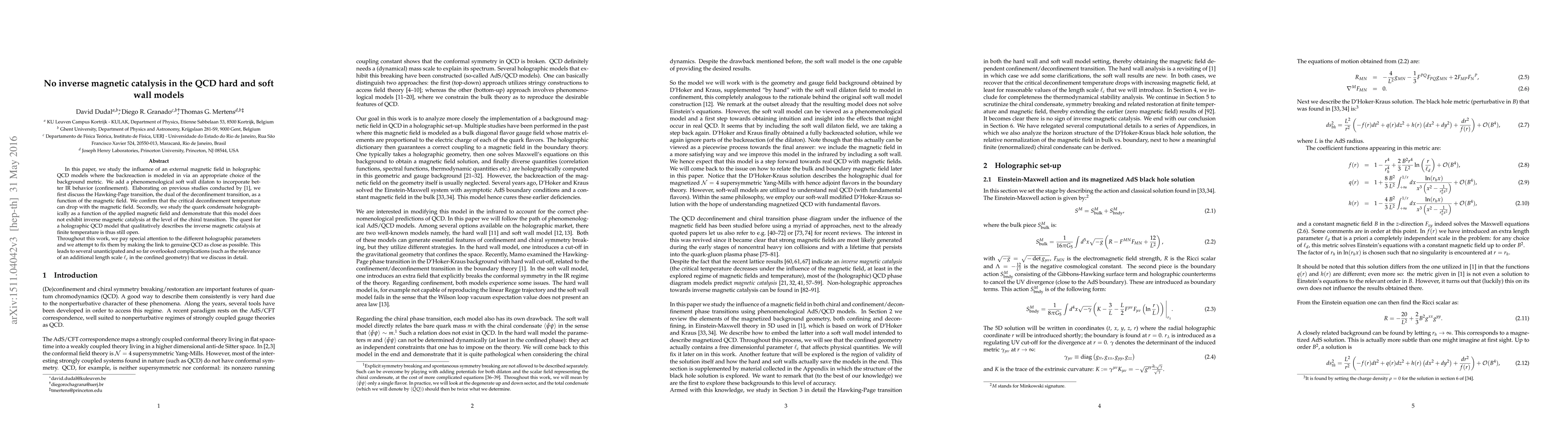 This paper investigates the impact of external magnetic fields in holographic QCD models with soft and hard wall approaches, confirming a drop in critical deconfinement temperature with magnetic fields but finding no evidence of inverse magnetic catalysis in the quark condensate, highlighting ongoing challenges in achieving a model that accurately describes this phenomenon.