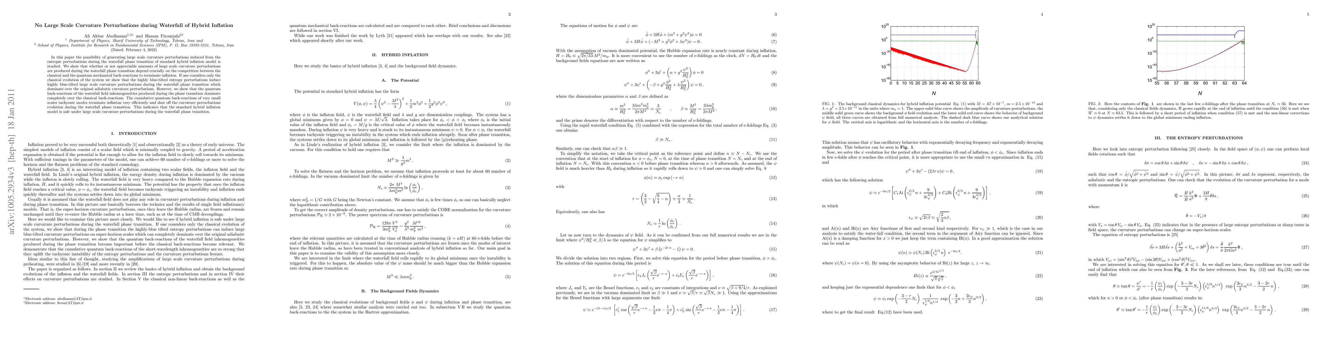 This paper investigates the generation of large scale curvature perturbations during the waterfall phase transition in hybrid inflation models, finding that quantum back-reactions dominate over classical evolution, effectively preventing significant perturbations and thus safeguarding the model.