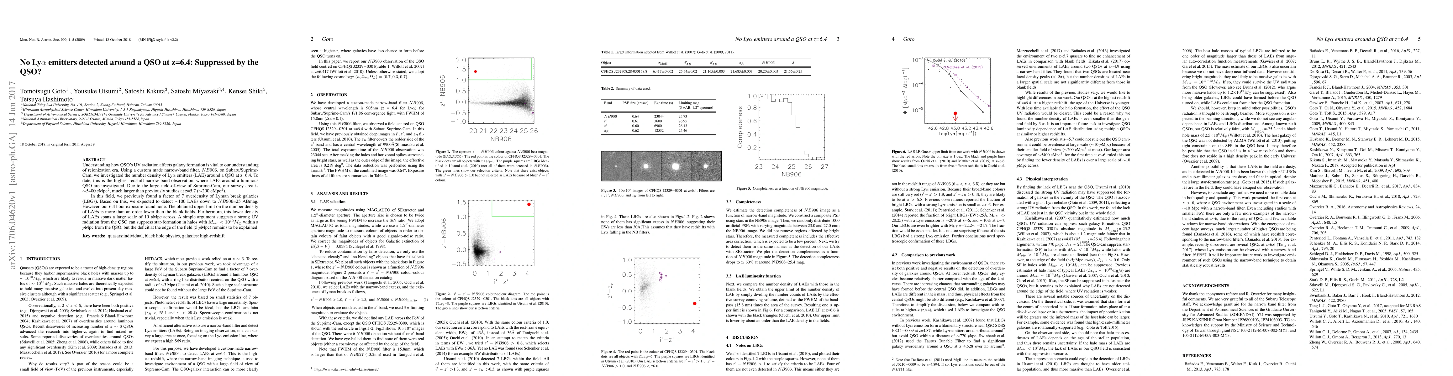 This study investigates the number density of Lyα emitters (LAEs) around a QSO at z=6.4 using a custom narrow-band filter on Subaru/Suprime-Cam, finding no LAEs despite an expected overdensity. The results suggest that the QSO's UV radiation may suppress star formation in nearby low-mass halos, though the cause of the deficit at the field's edge remains unclear.