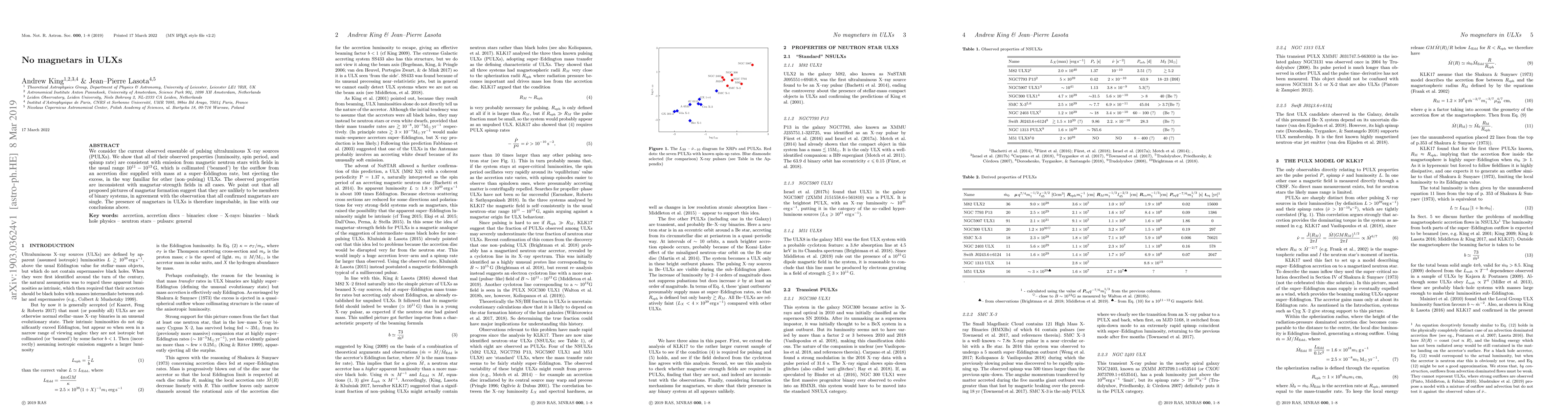 We consider the current observed ensemble of pulsing ultraluminous X-ray sources (PULXs). We show that all of their observed properties (luminosity, spin period, and spinup rate) are consistent with emission from magnetic neutron stars with fields in the usual range $10^{11} - 10^{13}\, {\rm G}$, which is collimated (`beamed') by the outflow from an accretion disc supplied with mass at a super-Eddington rate, but ejecting the excess, in the way familiar for other (non-pulsing) ULXs. The observed properties are inconsistent with magnetar-strength fields in all cases. We point out that all proposed pictures of magnetar formation suggest that they are unlikely to be members of binary systems, in agreement with the observation that all confirmed magnetars are single. The presence of magnetars in ULXs is therefore improbable, in line with our conclusions above.