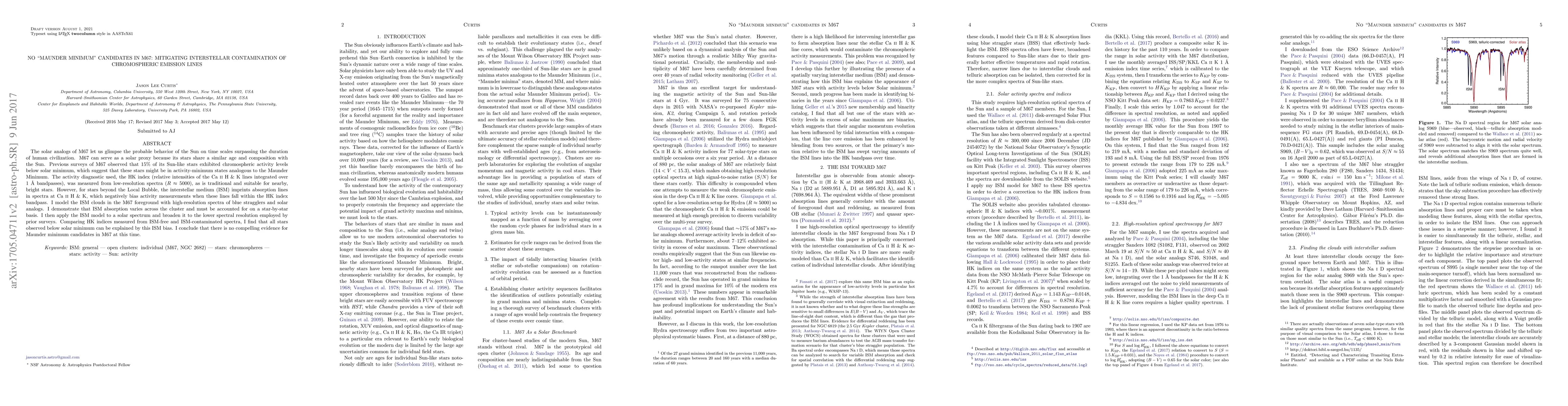New research finds that stars in M67, a solar analog cluster, do not show evidence of 'Maunder Minimum' states due to contamination from interstellar medium absorption lines in their spectra.