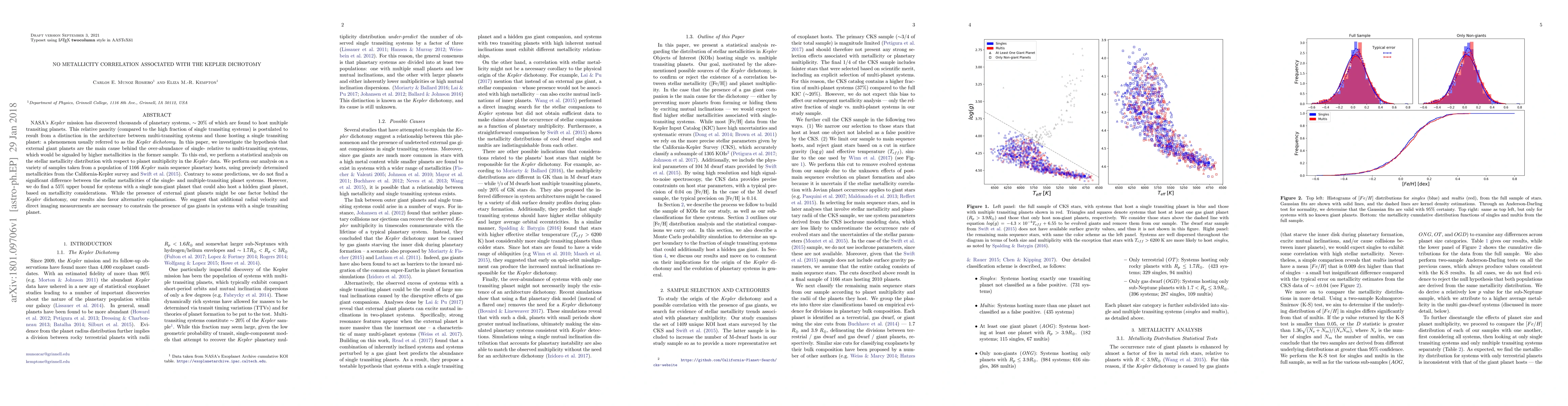 This paper investigates whether the Kepler dichotomy—the difference in architecture between systems with multiple versus single transiting planets—is linked to stellar metallicity. The study finds no significant metallicity difference between these systems, suggesting that the dichotomy may not be primarily driven by the presence of external giant planets.