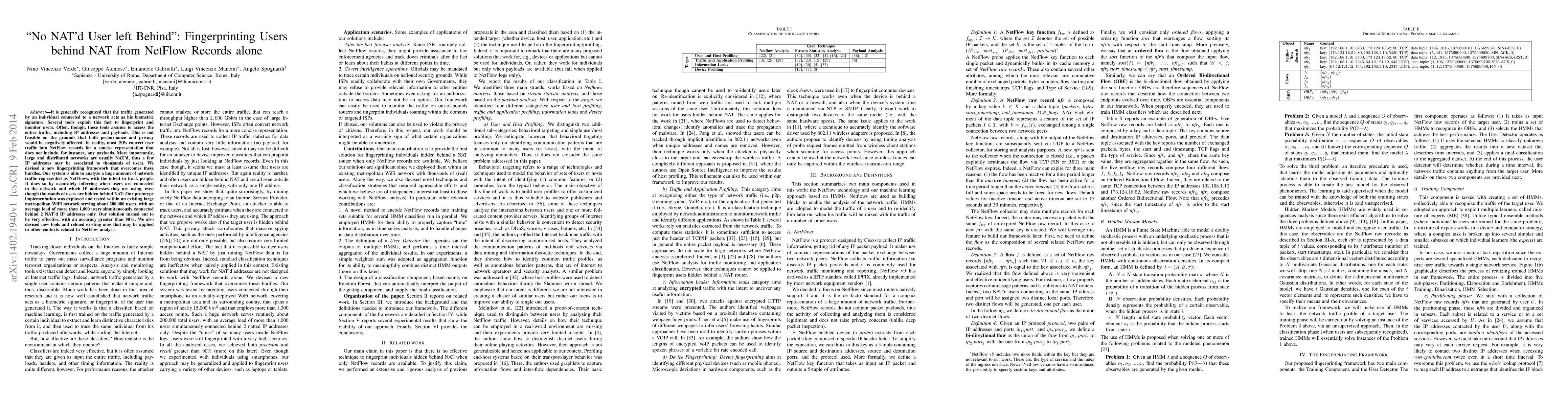 It is generally recognized that the traffic generated by an individual connected to a network acts as his biometric signature. Several tools exploit this fact to fingerprint and monitor users. Often, though, these tools assume to access the entire traffic, including IP addresses and payloads. This is not feasible on the grounds that both performance and privacy would be negatively affected. In reality, most ISPs convert user traffic into NetFlow records for a concise representation that does not include, for instance, any payloads. More importantly, large and distributed networks are usually NAT'd, thus a few IP addresses may be associated to thousands of users. We devised a new fingerprinting framework that overcomes these hurdles. Our system is able to analyze a huge amount of network traffic represented as NetFlows, with the intent to track people. It does so by accurately inferring when users are connected to the network and which IP addresses they are using, even though thousands of users are hidden behind NAT. Our prototype implementation was deployed and tested within an existing large metropolitan WiFi network serving about 200,000 users, with an average load of more than 1,000 users simultaneously connected behind 2 NAT'd IP addresses only. Our solution turned out to be very effective, with an accuracy greater than 90%. We also devised new tools and refined existing ones that may be applied to other contexts related to NetFlow analysis.