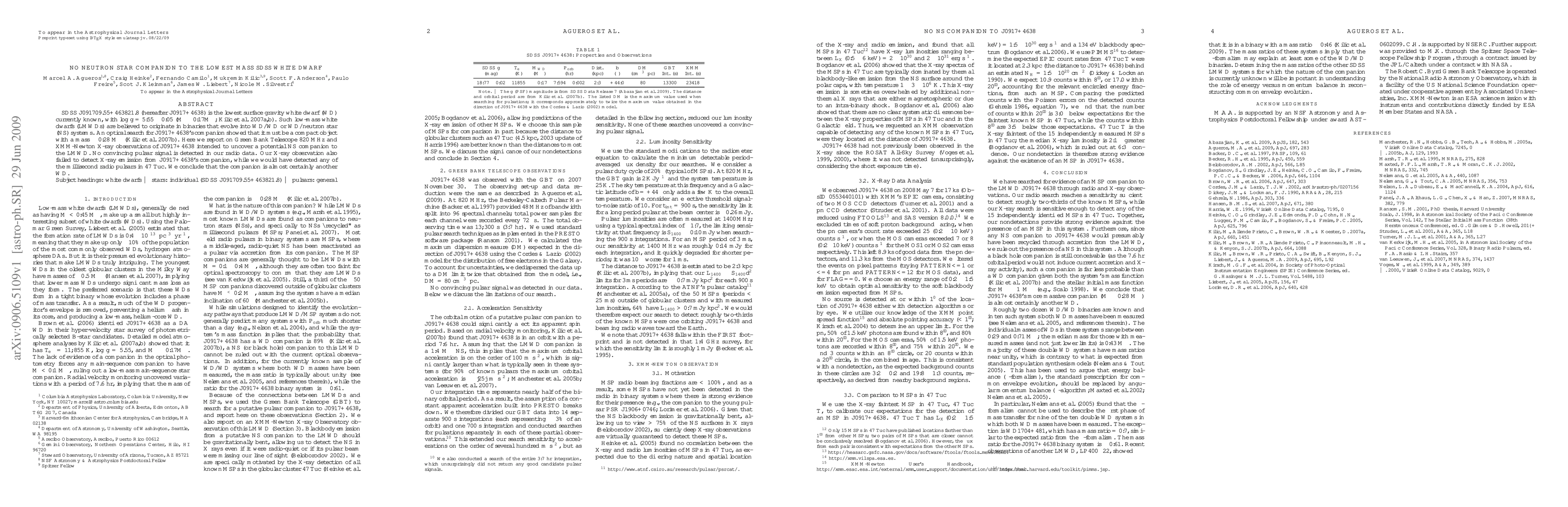 SDSS J091709.55+463821.8 (hereafter J0917+4638) is the lowest surface gravity white dwarf (WD) currently known, with log g = 5.55 +/- 0.05 (M ~ 0.17 M_sun; Kilic et al. 2007a,b). Such low-mass white dwarfs (LMWDs) are believed to originate in binaries that evolve into WD/WD or WD/neutron star (NS) systems. An optical search for J0917+4638's companion showed that it must be a compact object with a mass >= 0.28 M_sun (Kilic 2007b). Here we report on Green Bank Telescope 820 MHz and XMM-Newton X-ray observations of J0917+4638 intended to uncover a potential NS companion to the LMWD. No convincing pulsar signal is detected in our radio data. Our X-ray observation also failed to detect X-ray emission from J0917+4638's companion, while we would have detected any of the millisecond radio pulsars in 47 Tuc. We conclude that the companion is almost certainly another WD.
