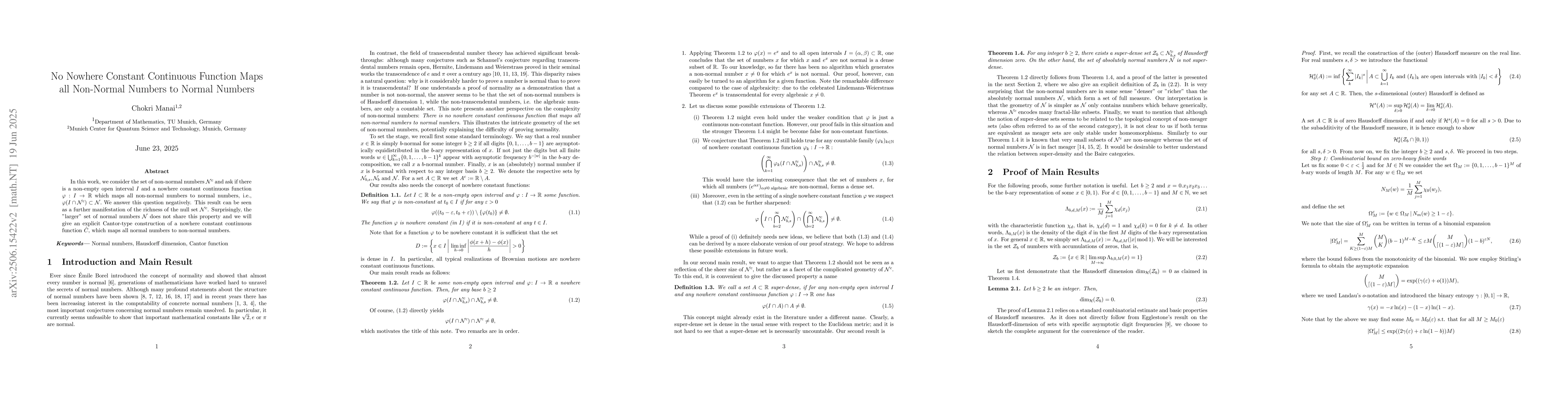 In this work, we consider the set of non-normal numbers $\mathcal{N}^c$ and ask if there is a non-empty open interval $I$ and a nowhere constant continuous function $\varphi : I \to \mathbb{R}$ which maps all non-normal numbers to normal numbers, i.e., $\varphi(I \cap \mathcal{N}^c) \subset \mathcal{N}.$ We answer this question negatively. This result can be seen as a further manifestation of the richness of the null set $\mathcal{N}^c$. Surprisingly, the "larger" set of normal numbers $\mathcal{N}$ does not share this property and we will give an explicit Cantor-type construction of a nowhere constant continuous function $\hat{C}$, which maps all normal numbers to non-normal numbers.