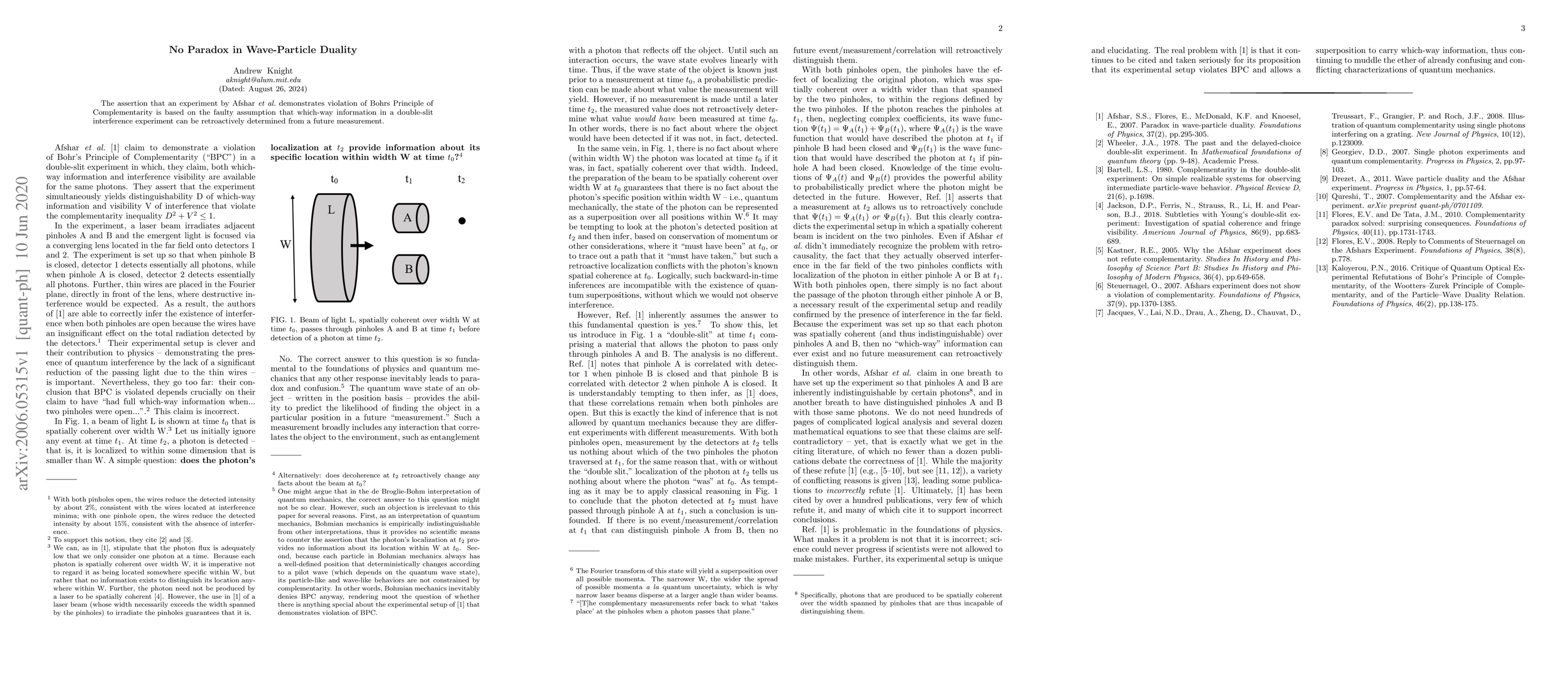 The paper offers a detailed analysis of Afshar et al.'s experiment, disproving their claim of violating BPC by challenging the assumption of retroactive determination of which-way information.