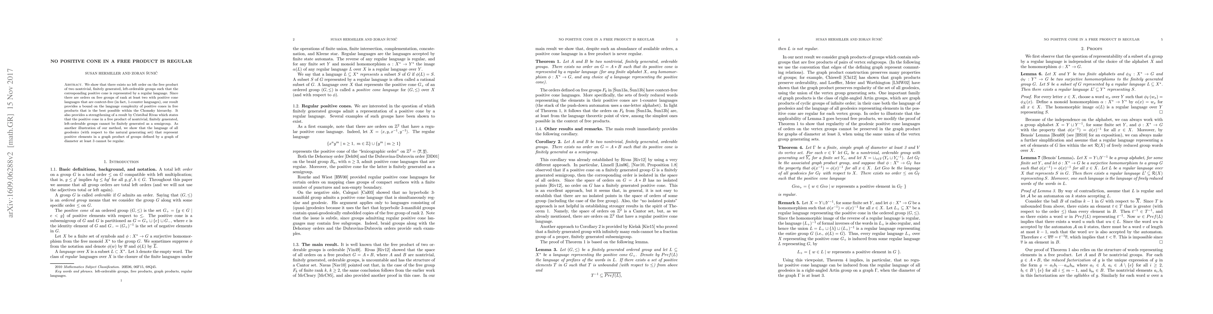 We show that there exists no left order on the free product of two nontrivial, finitely generated, left-orderable groups such that the corresponding positive cone is represented by a regular language. Since there are orders on free groups of rank at least two with positive cone languages that are context-free (in fact, 1-counter languages), our result provides a bound on the language complexity of positive cones in free products that is the best possible within the Chomsky hierarchy. It also provides a strengthening of a result by Cristobal Rivas stating that the positive cone in a free product of nontrivial, finitely generated, left-orderable groups cannot be finitely generated as a semigroup.