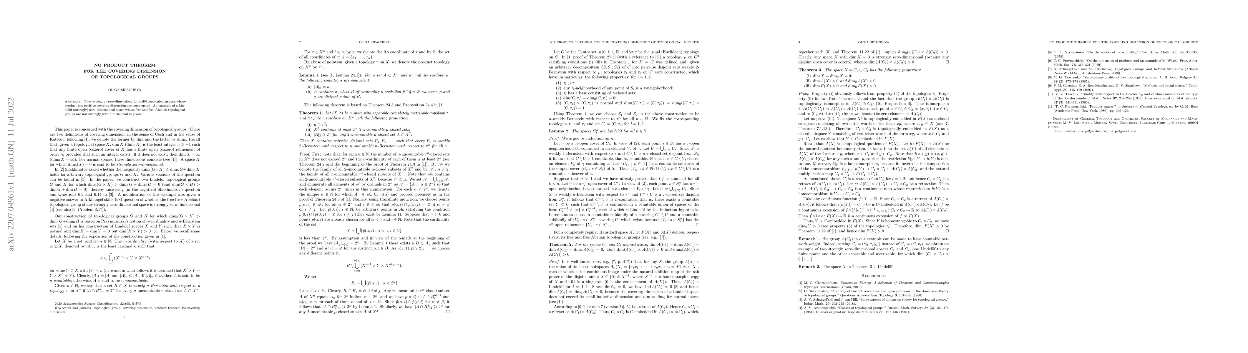 The paper constructs two strongly zero-dimensional Lindel\"of topological groups whose product has positive covering dimension, disproving the No Product Theorem. It also provides an example of a Lindel\"of space where its free and free Abelian topological groups are not strongly zero-dimensional.