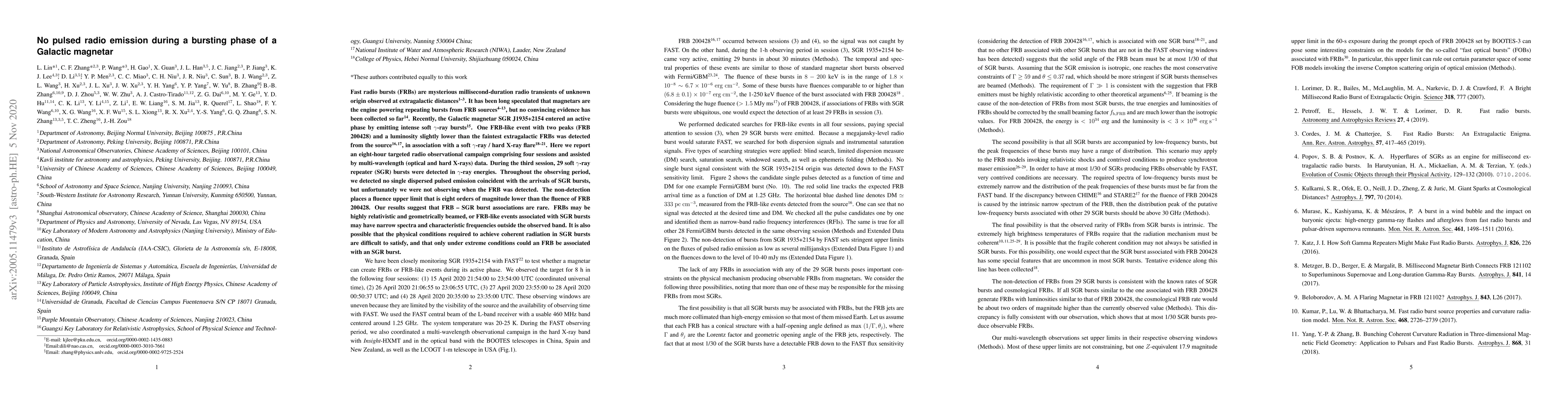 Fast radio bursts (FRBs) are mysterious millisecond-duration radio transients of unknown origin observed at extragalactic distances. It has been long speculated that magnetars are the engine powering repeating bursts from FRB sources, but no convincing evidence has been collected so far\cite{sun19}. Recently, the Galactic magnetar SGR J1935+2154 entered an active phase by emitting intense soft Gamma-ray bursts. One FRB-like event with two peaks (FRB 200428) and a luminosity slightly lower than the faintest extragalactic FRBs was detected from the source, in association with a soft Gamma-ray / hard X-ray flare. Here we report an eight-hour targeted radio observational campaign comprising four sessions and assisted by multi-wavelength (optical and hard X-rays) data. During the third session, 29 soft Gamma-ray repeater (SGR) bursts were detected in Gamma-ray energies. Throughout the observing period, we detected no single dispersed pulsed emission coincident with the arrivals of SGR bursts, but unfortunately we were not observing when the FRB was detected. The non-detection places a fluence upper limit that is eight orders of magnitude lower than the fluence of FRB 200428. Our results suggest that FRB -- SGR burst associations are rare. FRBs may be highly relativistic and geometrically beamed, or FRB-like events associated with SGR bursts may have narrow spectra and characteristic frequencies outside the observed band. It is also possible that the physical conditions required to achieve coherent radiation in SGR bursts are difficult to satisfy, and that only under extreme conditions could an FRB be associated with an SGR burst.