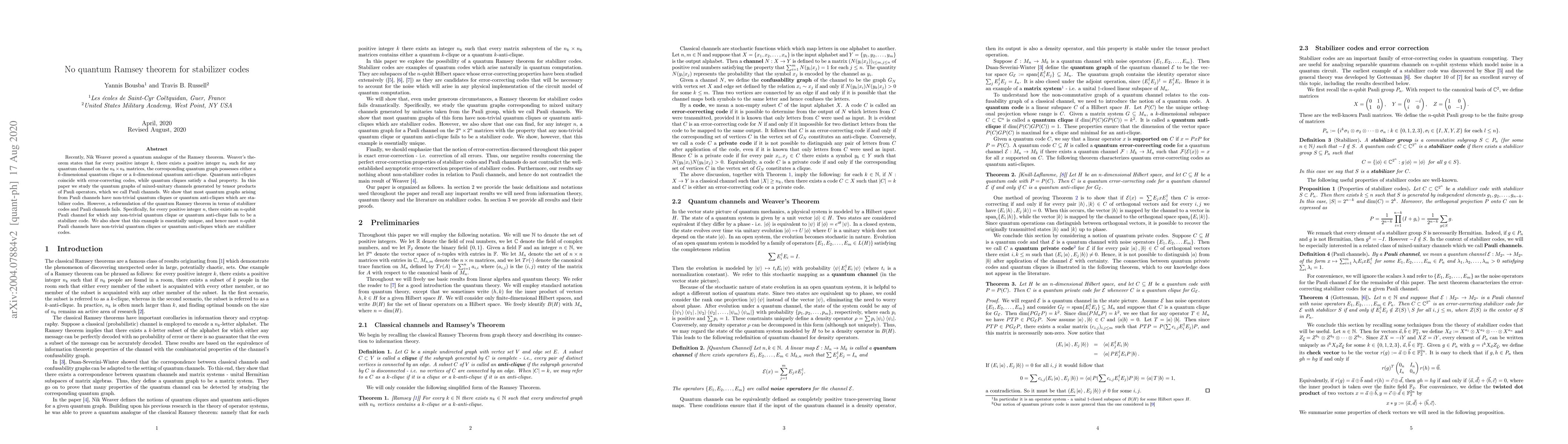 This paper demonstrates that a reformulation of the quantum Ramsey theorem in terms of stabilizer codes and Pauli channels does not hold. It shows that for any positive integer $n$, there exists an $n$-qubit Pauli channel where any non-trivial quantum clique or anticlique cannot be a stabilizer code.