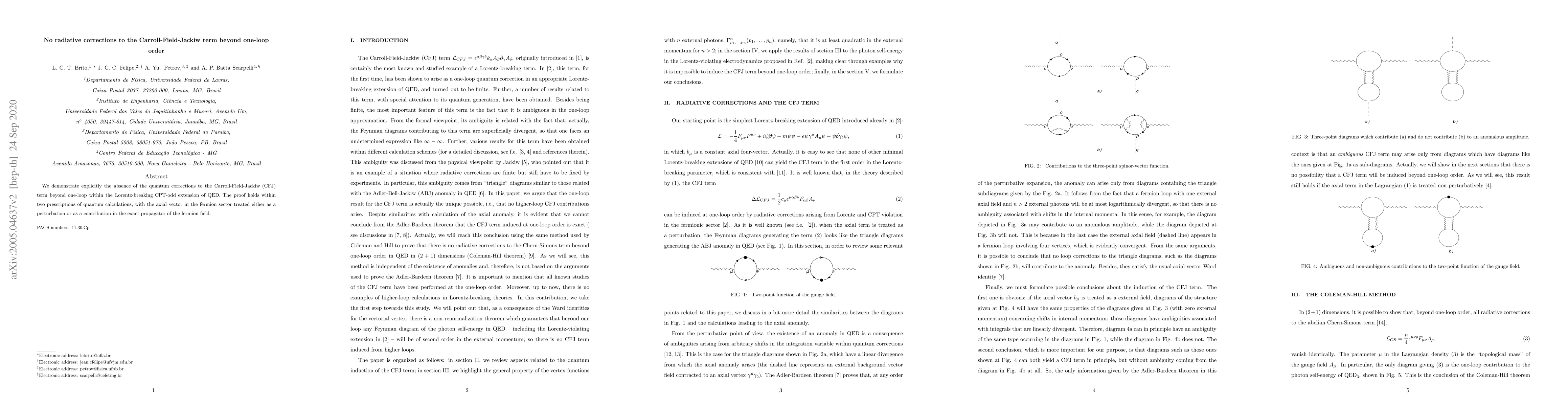 This paper proves that the Carroll-Field-Jackiw term in the Lorentz-breaking CPT-odd extension of QED does not receive quantum corrections beyond one-loop order, using two different quantum calculation methods. The axial vector is treated either as a perturbation or as part of the exact fermion propagator.