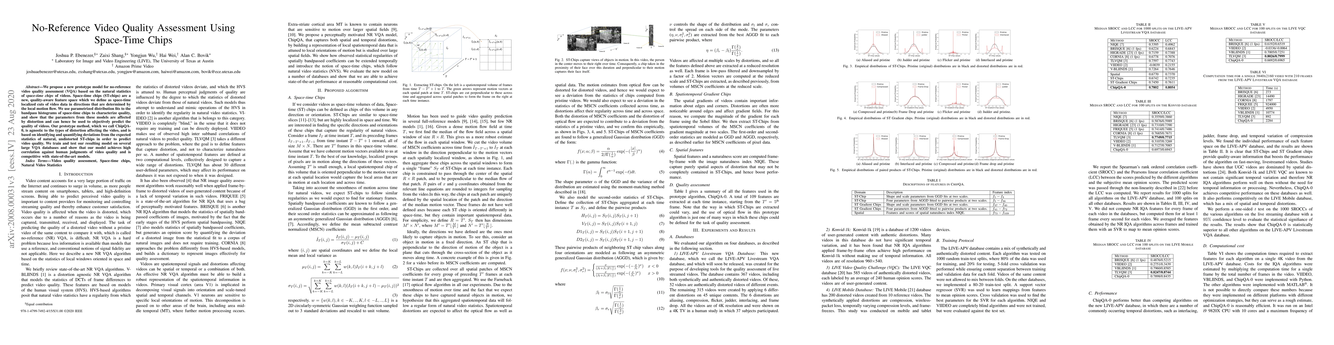 This paper introduces ChipQA-0, a no-reference video quality assessment model based on space-time chips, which are localized video cuts defined by local motion flow. The model uses distribution fits to predict video quality by identifying deviations from the expected statistics of natural, undistorted chips, achieving high correlation with human judgments and competitive performance against state-of-the-art models.