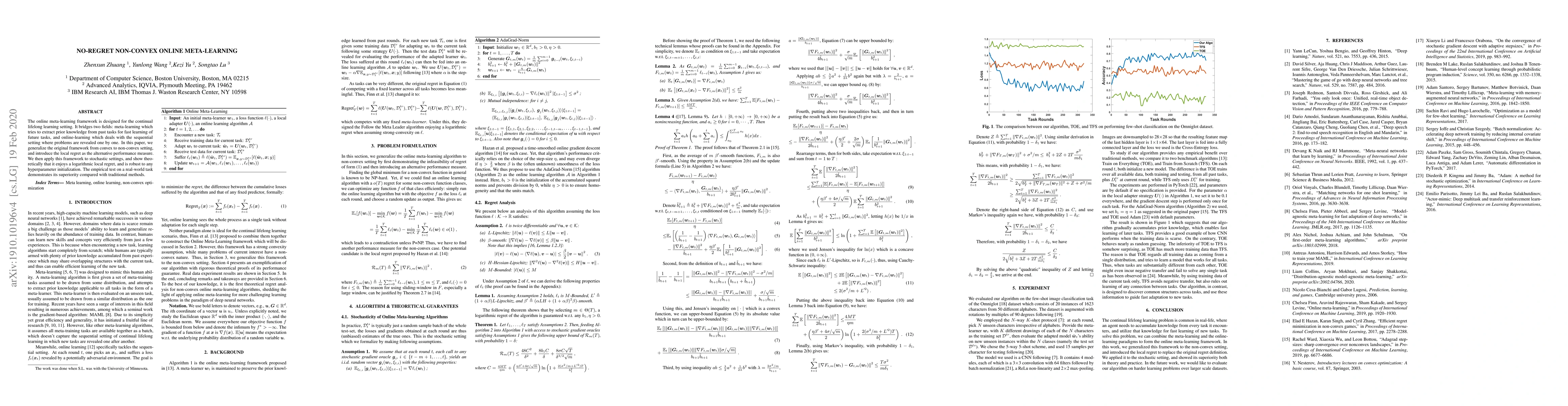 This paper extends the online meta-learning framework to handle non-convex problems, introducing local regret as a performance metric. It demonstrates theoretical guarantees of logarithmic local regret and robustness to hyperparameters, and shows empirical superiority over traditional methods in real-world tasks.
