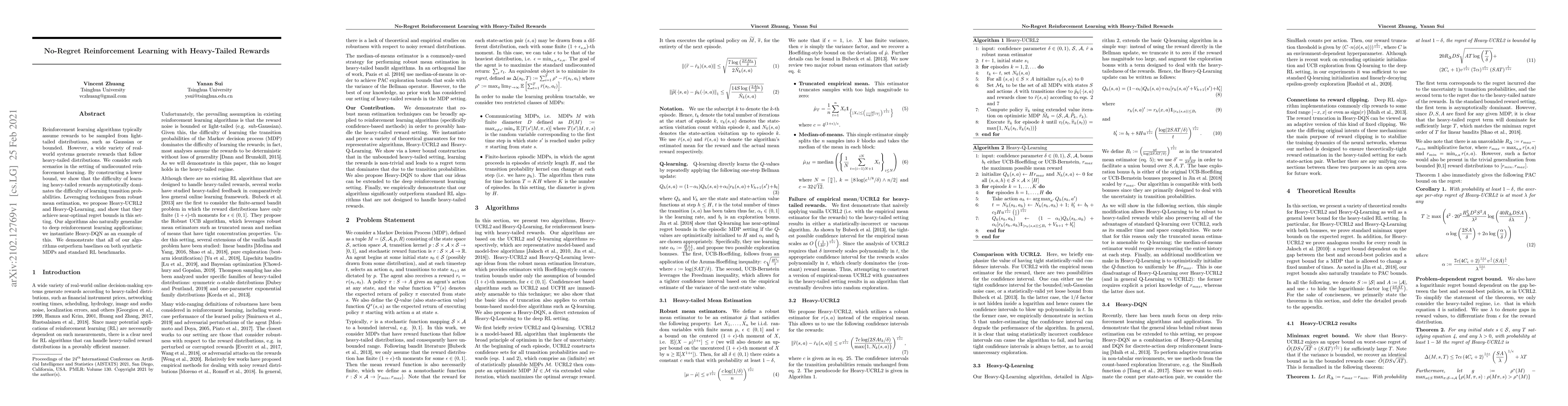 This paper addresses reinforcement learning (RL) in environments where rewards follow heavy-tailed distributions, proposing algorithms Heavy-UCRL2 and Heavy-Q-Learning that achieve near-optimal regret bounds. The algorithms generalize to deep RL, exemplified by Heavy-DQN, and outperform baselines in synthetic and standard RL benchmarks.