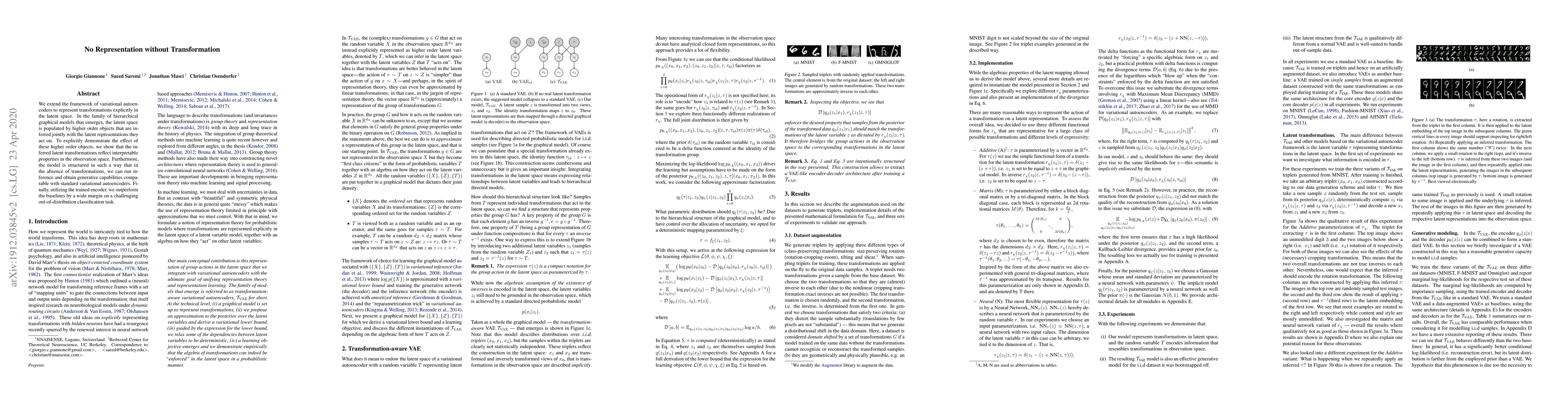 We extend the framework of variational autoencoders to represent transformations explicitly in the latent space. In the family of hierarchical graphical models that emerges, the latent space is populated by higher order objects that are inferred jointly with the latent representations they act on. To explicitly demonstrate the effect of these higher order objects, we show that the inferred latent transformations reflect interpretable properties in the observation space. Furthermore, the model is structured in such a way that in the absence of transformations, we can run inference and obtain generative capabilities comparable with standard variational autoencoders. Finally, utilizing the trained encoder, we outperform the baselines by a wide margin on a challenging out-of-distribution classification task.