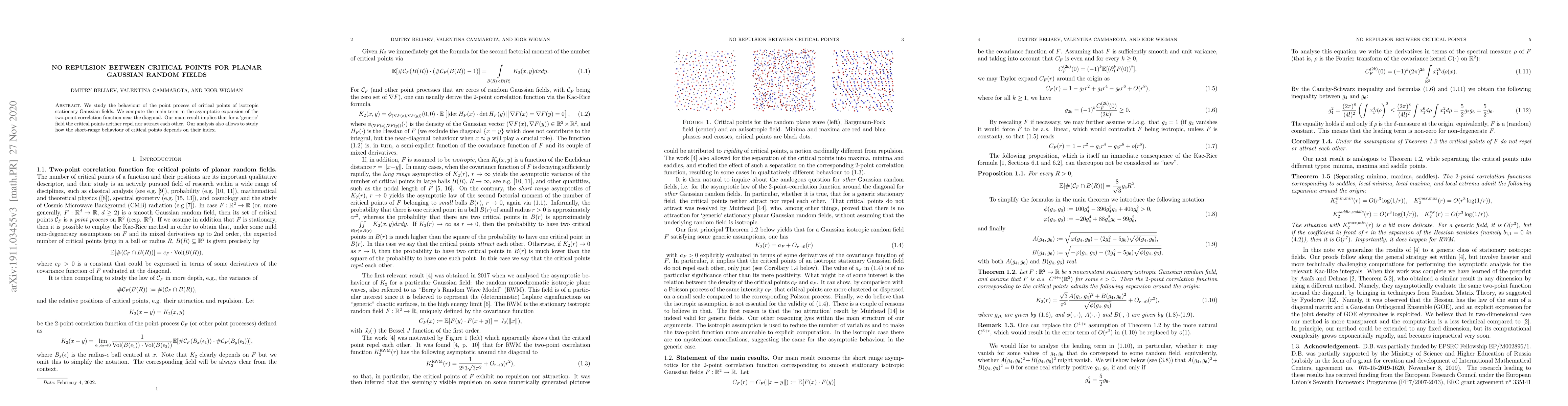This study finds that critical points in planar Gaussian random fields neither repel nor attract each other, with their short-range behavior depending on their index.