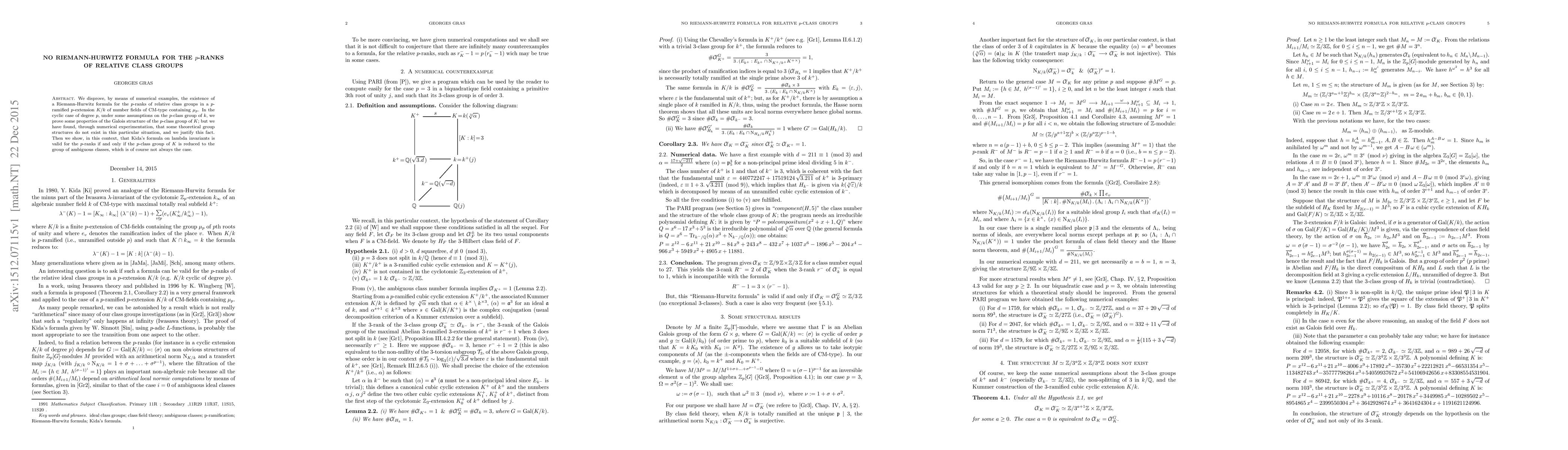 We disprove, by means of numerical examples, the existence of a Riemann-Hurwitz formula for the p-ranks of relative class groups in a p-ramified p-extension K/k of number fields of CM-type containing ?\_p. In the cyclic case of degree p, under some assumptions on the p-class group of k, we prove some properties of the Galois structure of the p-class group of K; but we have found, through numerical experimentation, that some theoretical group structures do not exist in this particular situation, and we justify this fact. Then we show, in this context, that Kida's formula on lambda invariants is valid for the p-ranks if and only if the p-class group of K is reduced to the group of ambiguous classes, which is of course not always the case.