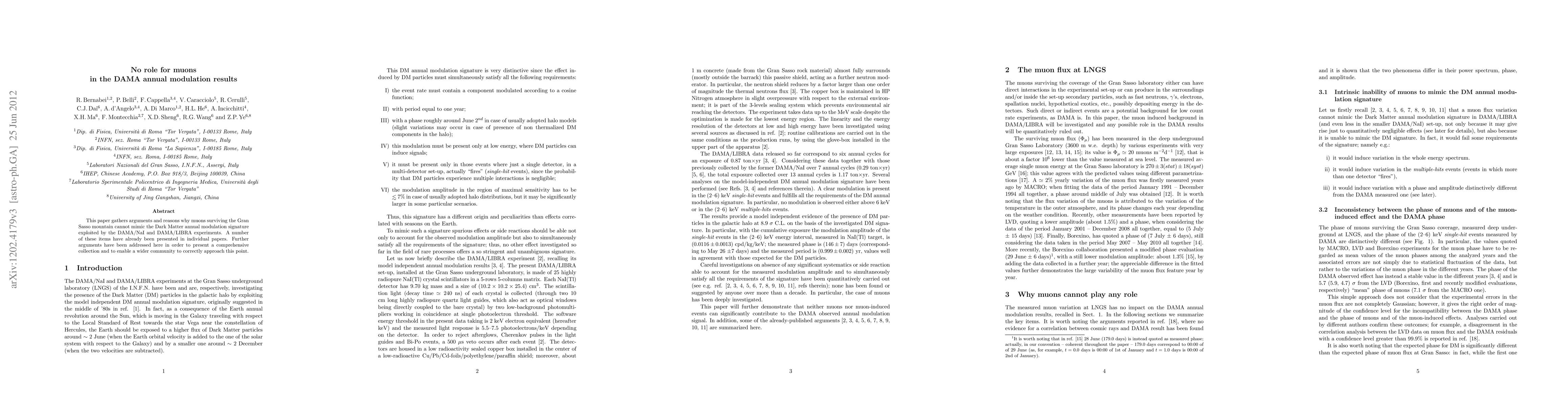 Researchers conclude that muons surviving in the Gran Sasso mountain cannot mimic the Dark Matter annual modulation signature seen in DAMA experiments. They gather various arguments to support this finding.