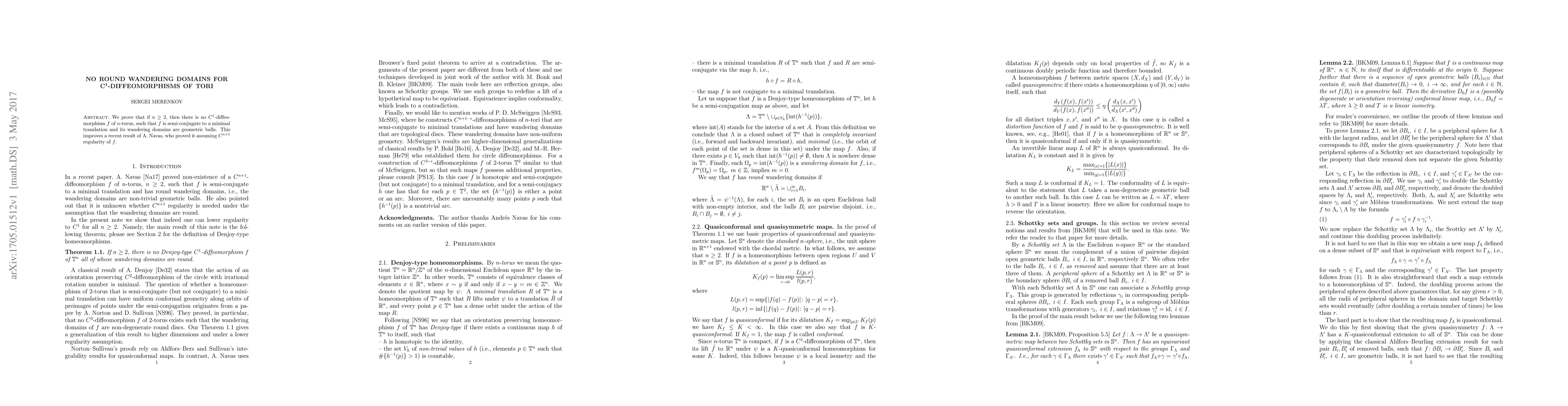 We prove that if $n\geq 2$, then there is no $C^1$-diffeomorphism $f$ of $n$-torus, such that $f$ is semi-conjugate to a minimal translation and its wandering domains are geometric balls. This improves a recent result of A. Navas, who proved it assuming $C^{n+1}$ regularity of $f$.