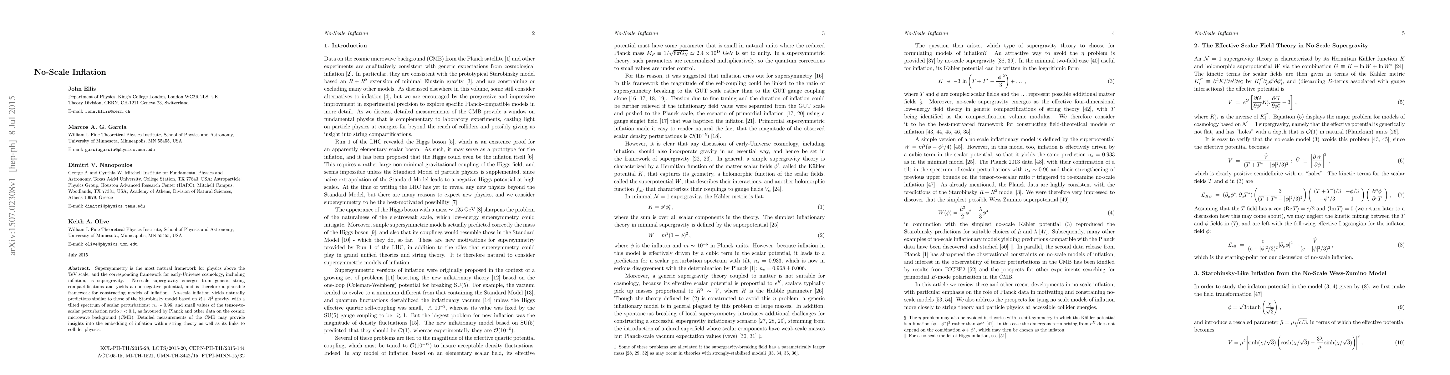 This paper explores no-scale supergravity as a framework for inflation, showing it naturally predicts a scalar spectral index $n_s \sim 0.96$ and a small tensor-to-scalar ratio $r < 0.1$, aligning with CMB data. It suggests potential insights into string theory and collider physics through detailed CMB measurements.