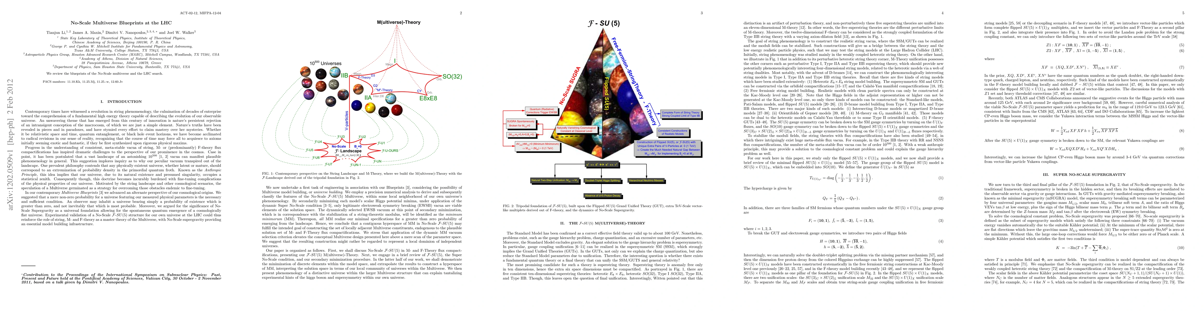 We review the blueprints of the No-Scale multiverse and the LHC search.