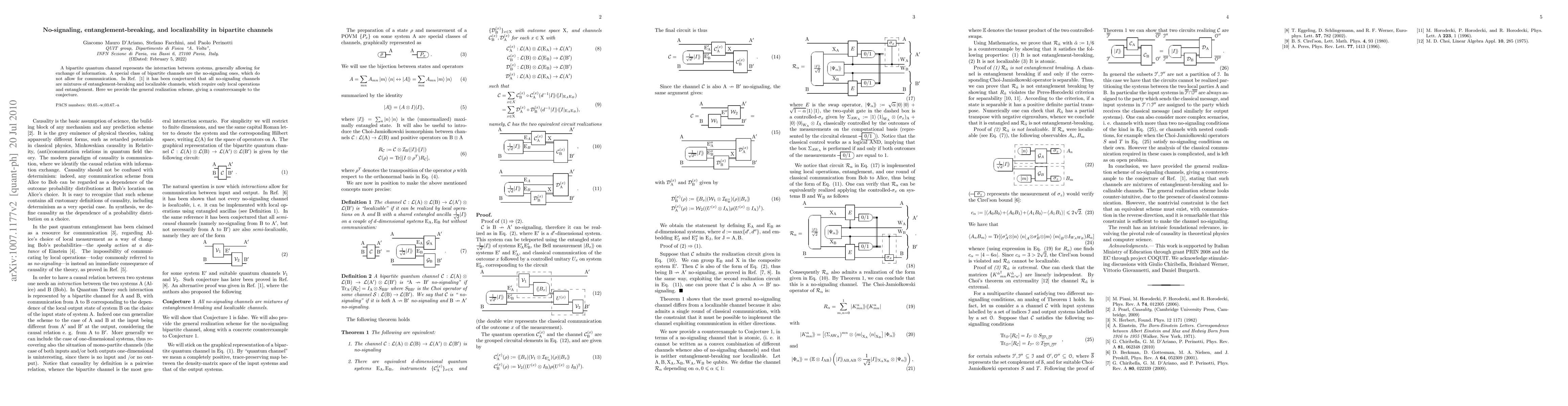 This paper disproves the conjecture that all no-signaling bipartite quantum channels are mixtures of entanglement-breaking and localizable channels, presenting a counterexample to the proposed classification.
