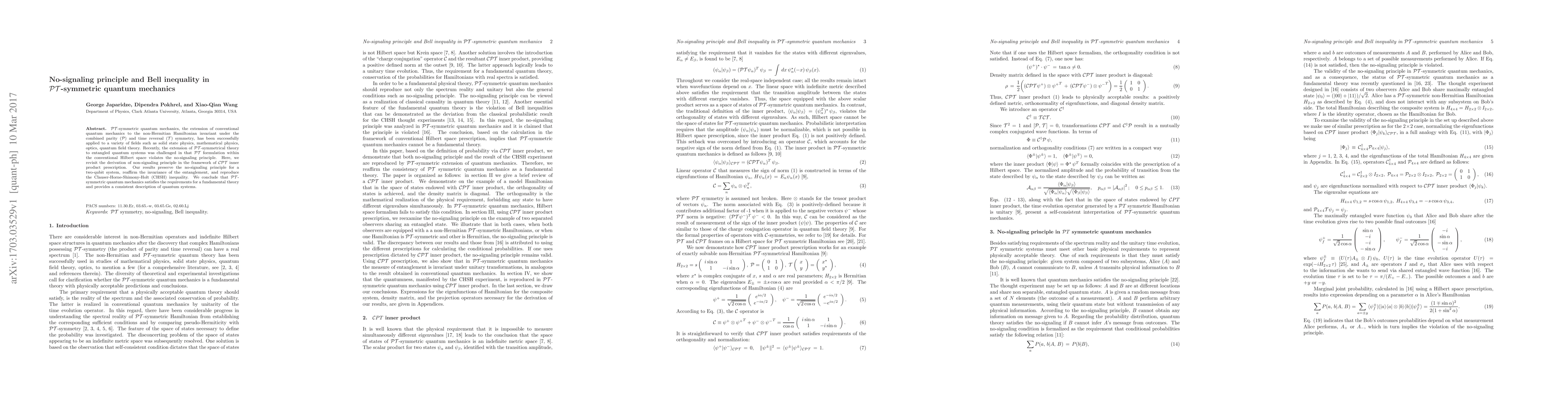 PT-symmetric quantum mechanics, the extension of conventional quantum mechanics to the non-Hermitian Hamiltonian invariant under the combined parity (P) and time reversal (T) symmetry, has been successfully applied to a variety of fields such as solid state physics, mathematical physics, optics, quantum field theory. Recently, the extension of PT-symmetrical theory to entangled quantum systems was challenged in that PT formulation within the conventional Hilbert space violates the no-signaling principle. Here, we revisit the derivation of non-signaling principle in the framework of PT inner product prescription. Our results preserve the no-signaling principle for a two-qubit system, reaffirm the invariance of the entanglement, and reproduce the Clauser-Horne-Shimony-Holt (CHSH) inequality. We conclude that PT-symmetric quantum mechanics satisfies the requirements for a fundamental theory and provides a consistent description of quantum systems.