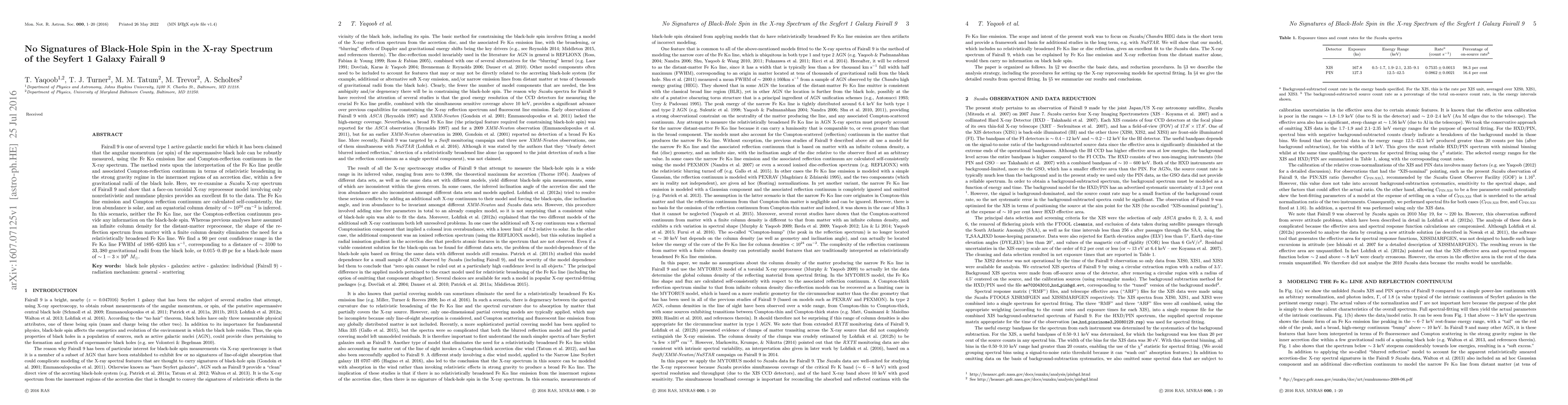 Fairall 9 is one of several type 1 active galactic nuclei for which it has been claimed that the angular momentum (or spin) of the supermassive black hole can be robustly measured, using the Fe K$\alpha$ emission line and Compton-reflection continuum in the X-ray spectrum. The method rests upon the interpretation of the Fe K$\alpha$ line profile and associated Compton-reflection continuum in terms of relativistic broadening in the strong gravity regime in the innermost regions of an accretion disc, within a few gravitational radii of the black hole. Here, we re-examine a Suzaku X-ray spectrum of Fairall 9 and show that a face-on toroidal X-ray reprocessor model involving only nonrelativistic and mundane physics provides an excellent fit to the data. The Fe K$\alpha$ line emission and Compton reflection continuum are calculated self-consistently, the iron abundance is solar, and an equatorial column density of $\sim 10^{24} \ \rm cm^{-2}$ is inferred. In this scenario, neither the Fe K$\alpha$ line, nor the Compton-reflection continuum provide any information on the black-hole spin. Whereas previous analyses have assumed an infinite column density for the distant-matter reprocessor, the shape of the reflection spectrum from matter with a finite column density eliminates the need for a relativistically broadened Fe K$\alpha$ line. We find a 90 per cent confidence range in the Fe K$\alpha$ line FWHM of $1895$-$6205 \ \rm km \ s^{-1}$, corresponding to a distance of $\sim 3100$ to $33,380$ gravitational radii from the black hole, or $0.015$-$0.49$ pc for a black-hole mass of $\sim 1-3 \times 10^{8} \ M_{\odot}$.