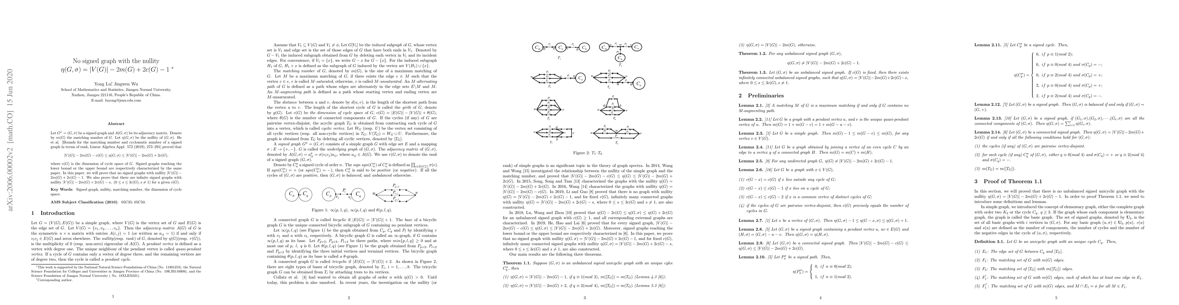 This paper proves that no signed graph can achieve the nullity value of $|V(G)|-2m(G)+2c(G)-1$, where $m(G)$ is the matching number and $c(G)$ is the dimension of the cycle space of $G$. Additionally, it shows that there exist infinite signed graphs with nullity $|V(G)|-2m(G)+2c(G)-s$ for $0\leq s\leq 3c(G)$ and $s\neq 1$.