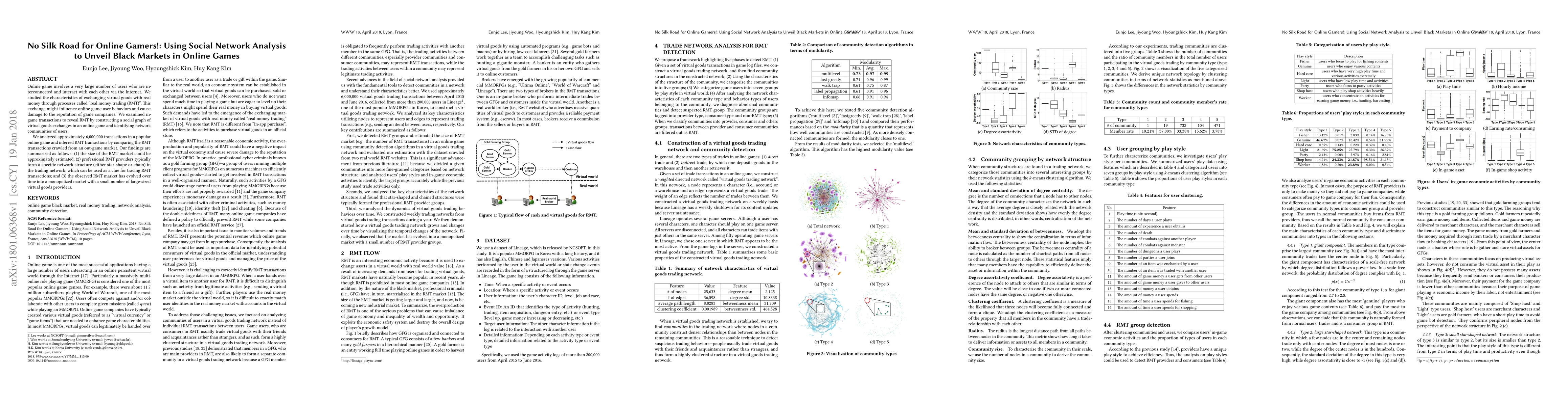 Online game involves a very large number of users who are interconnected and interact with each other via the Internet. We studied the characteristics of exchanging virtual goods with real money through processes called "real money trading (RMT)." This exchange might influence online game user behaviors and cause damage to the reputation of game companies. We examined in-game transactions to reveal RMT by constructing a social graph of virtual goods exchanges in an online game and identifying network communities of users. We analyzed approximately 6,000,000 transactions in a popular online game and inferred RMT transactions by comparing the RMT transactions crawled from an out-game market. Our findings are summarized as follows: (1) the size of the RMT market could be approximately estimated; (2) professional RMT providers typically form a specific network structure (either star-shape or chain) in the trading network, which can be used as a clue for tracing RMT transactions; and (3) the observed RMT market has evolved over time into a monopolized market with a small number of large-sized virtual goods providers.