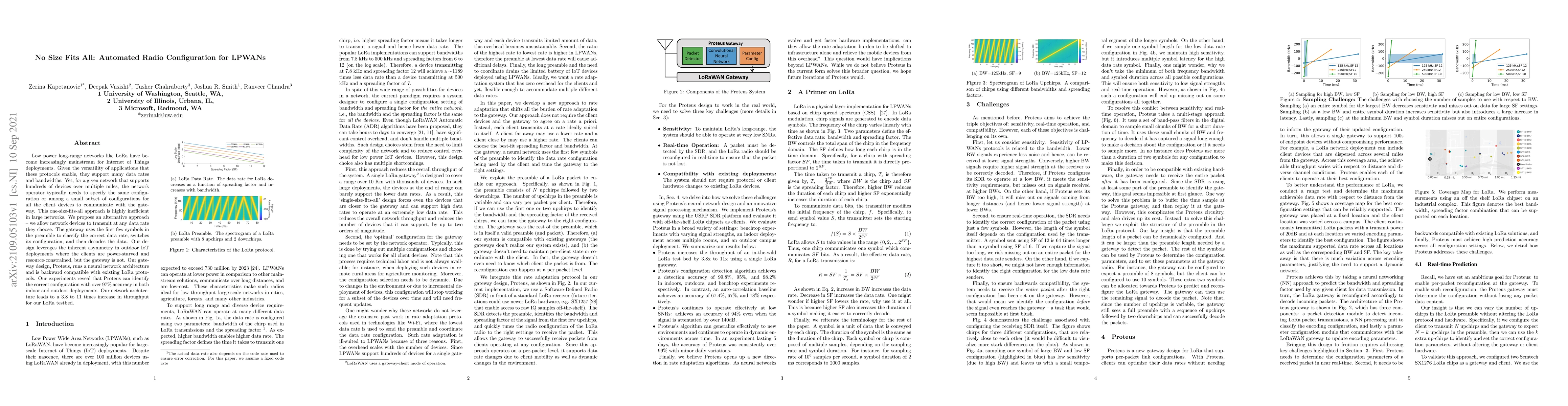 Low power long-range networks like LoRa have become increasingly mainstream for Internet of Things deployments. Given the versatility of applications that these protocols enable, they support many data rates and bandwidths. Yet, for a given network that supports hundreds of devices over multiple miles, the network operator typically needs to specify the same configuration or among a small subset of configurations for all the client devices to communicate with the gateway. This one-size-fits-all approach is highly inefficient in large networks. We propose an alternative approach -- we allow network devices to transmit at any data rate they choose. The gateway uses the first few symbols in the preamble to classify the correct data rate, switches its configuration, and then decodes the data. Our design leverages the inherent asymmetry in outdoor IoT deployments where the clients are power-starved and resource-constrained, but the gateway is not. Our gateway design, Proteus, runs a neural network architecture and is backward compatible with existing LoRa protocols. Our experiments reveal that Proteus can identify the correct configuration with over 97% accuracy in both indoor and outdoor deployments. Our network architecture leads to a 3.8 to 11 times increase in throughput for our LoRa testbed.