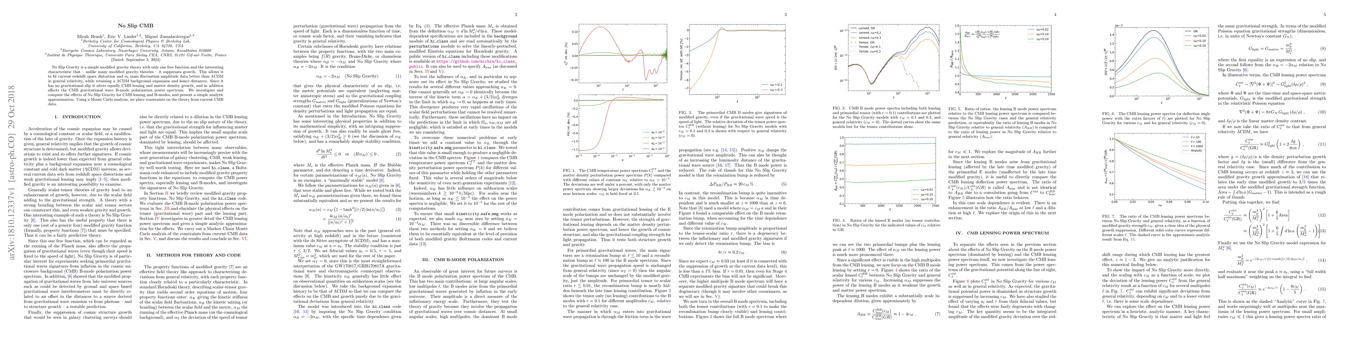 This paper explores No Slip Gravity, a modified gravity theory that suppresses growth better than $\Lambda$CDM, fitting redshift space distortion and mass fluctuation data. It investigates the theory's effects on CMB lensing and B-mode polarization, presenting an analytic approximation and constraints from current CMB data.