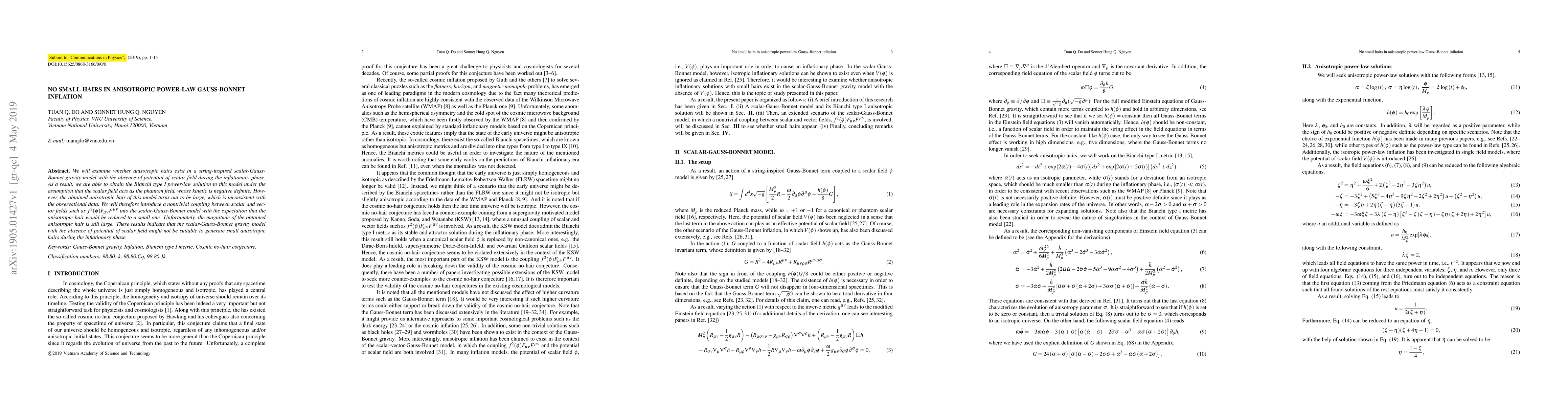 This paper explores the existence of anisotropic hairs in a scalar-Gauss-Bonnet gravity model without a scalar field potential during inflation, finding large anisotropic hairs inconsistent with observations. Attempts to reduce these hairs via scalar-vector field coupling are unsuccessful, suggesting the model is unsuitable for generating small anisotropic hairs during inflation.