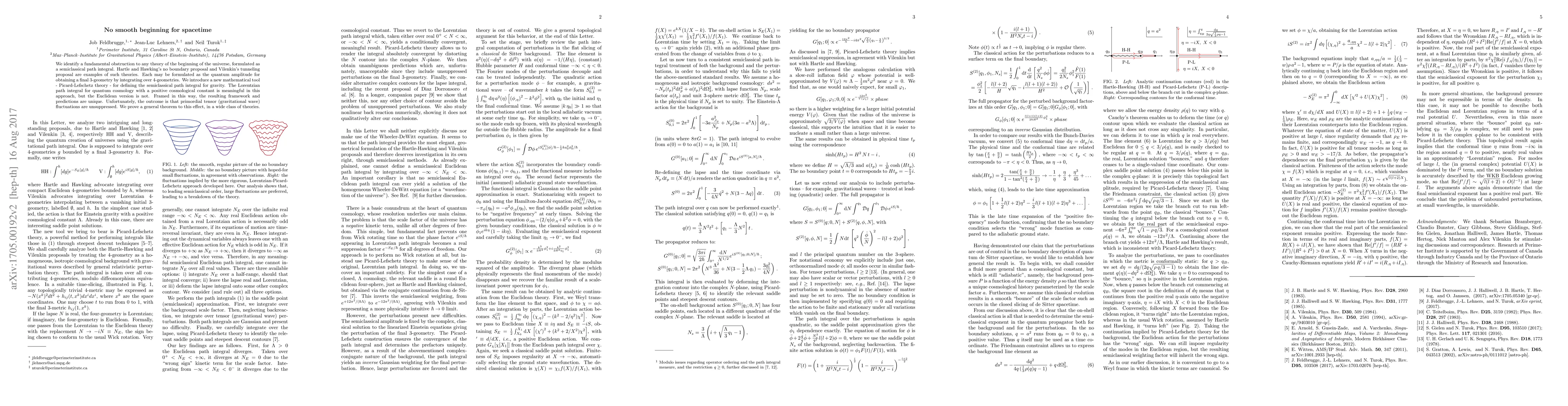 We identify a fundamental obstruction to any theory of the beginning of the universe, formulated as a semiclassical path integral. Hartle and Hawking's no boundary proposal and Vilenkin's tunneling proposal are examples of such theories. Each may be formulated as the quantum amplitude for obtaining a final 3-geometry by integrating over 4-geometries. We introduce a new mathematical tool - Picard-Lefschetz theory - for defining the semiclassical path integral for gravity. The Lorentzian path integral for quantum cosmology with a positive cosmological constant is meaningful in this approach, but the Euclidean version is not. Framed in this way, the resulting framework and predictions are unique. Unfortunately, the outcome is that primordial tensor (gravitational wave) fluctuations are unsuppressed. We prove a general theorem to this effect, in a wide class of theories.