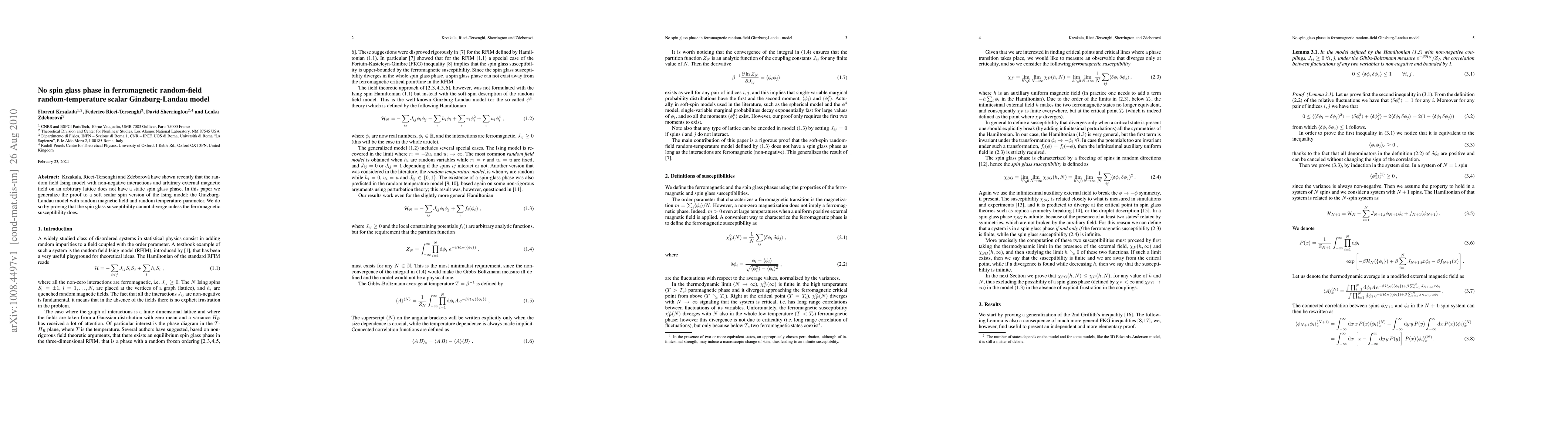 This paper generalizes the proof that the random-field Ising model does not exhibit a spin glass phase to a scalar Ginzburg-Landau model with random magnetic fields and random temperature parameters. It concludes that the spin glass susceptibility cannot diverge without the ferromagnetic susceptibility doing so as well.