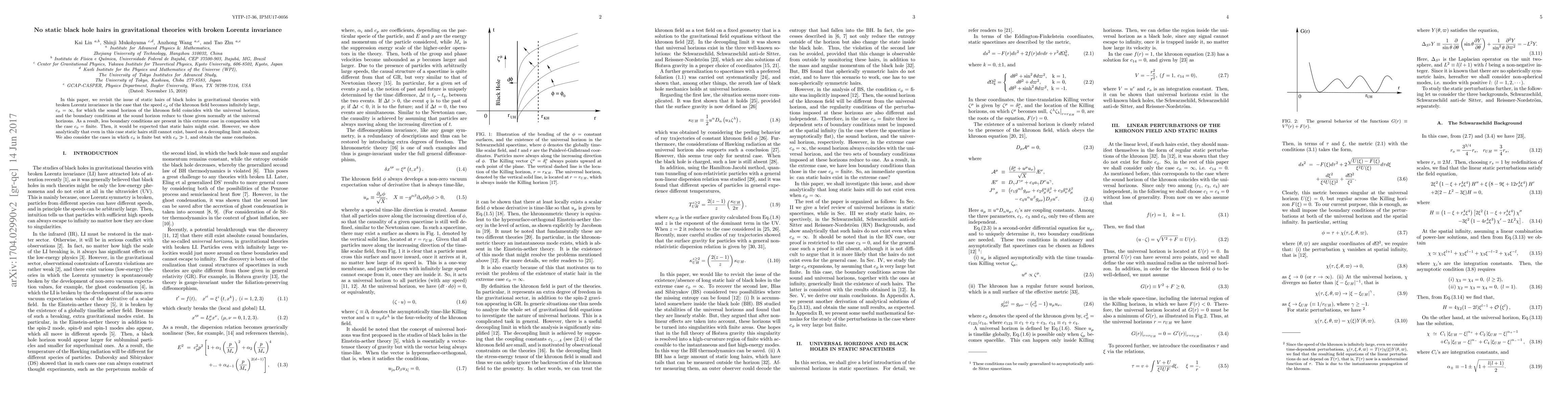 This paper demonstrates that static black hole "hairs" cannot exist in gravitational theories with broken Lorentz invariance, even when the speed of the khronon field approaches infinity. Through a decoupling limit analysis, the authors show that fewer boundary conditions do not lead to the presence of static hairs, despite initial expectations.