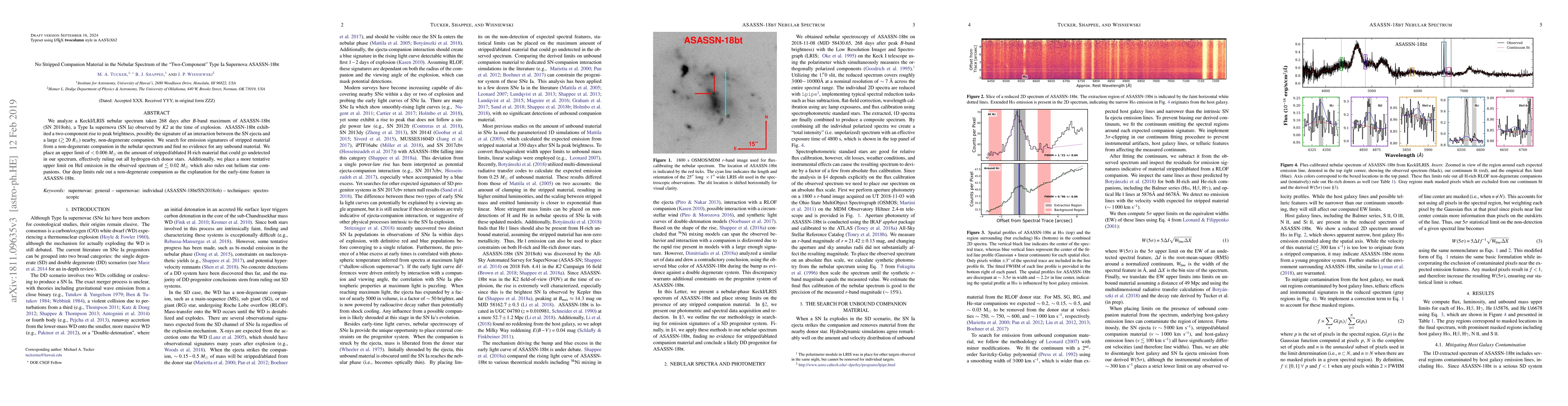 We analyze a KeckI/LRIS nebular spectrum taken 268 days after $B$-band maximum of ASASSN-18bt (SN~2018oh), a Type Ia supernova (SN Ia) observed by {\it K2} at the time of explosion. ASASSN-18bt exhibited a two-component rise to peak brightness, possibly the signature of an interaction between the SN ejecta and a large ($\gtrsim 20~R_\odot$) nearby, non-degenerate companion. We search for emission signatures of stripped material from a non-degenerate companion in the nebular spectrum and find no evidence for any unbound material. We place an upper limit of $< 0.006~M_\odot$ on the amount of stripped/ablated H-rich material that could go undetected in our spectrum, effectively ruling out all hydrogen-rich donor stars. Additionally, we place a more tentative upper limit on HeI emission in the observed spectrum of $\lesssim 0.02~M_\odot$ which also rules out helium star companions. Our deep limits rule out a non-degenerate companion as the explanation for the early-time feature in ASASSN-18bt.