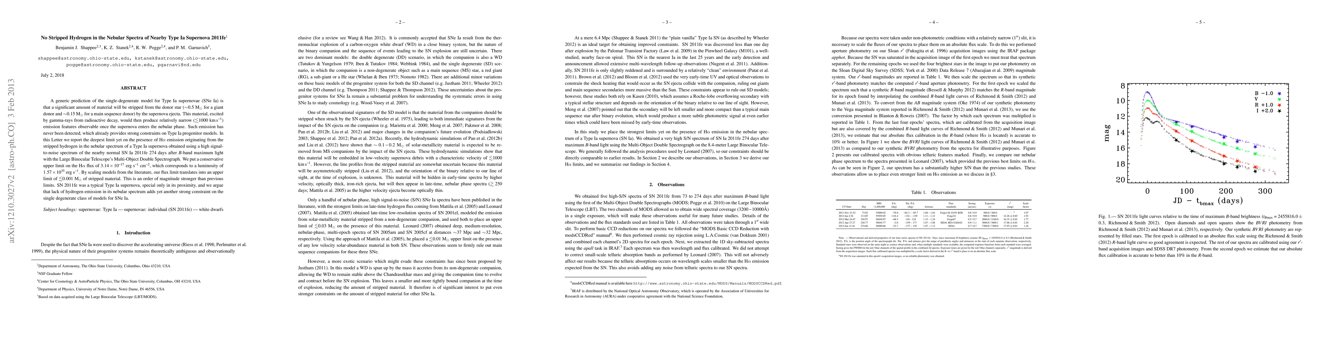 New research confirms that stripped hydrogen in Type Ia supernovae is not detected in nebular spectra, placing stronger constraints on single-degenerate models of these events.
