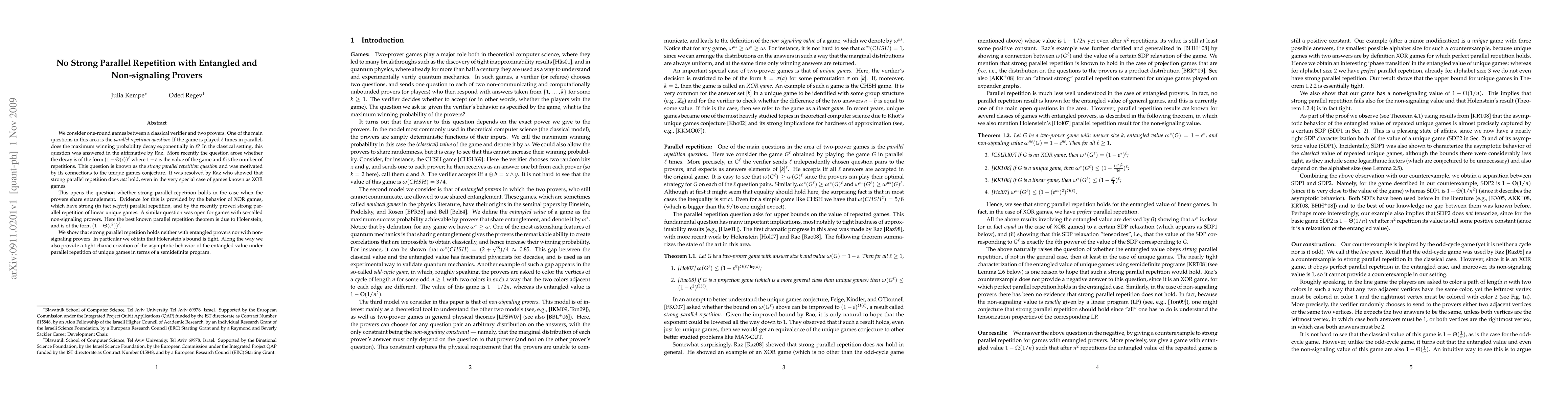 This paper investigates the strong parallel repetition question for one-round games with either entangled or non-signaling provers. It concludes that strong parallel repetition does not hold in either case, refuting the hypothesis that entanglement or non-signaling properties could lead to an exponential decay in winning probability with parallel repetitions.