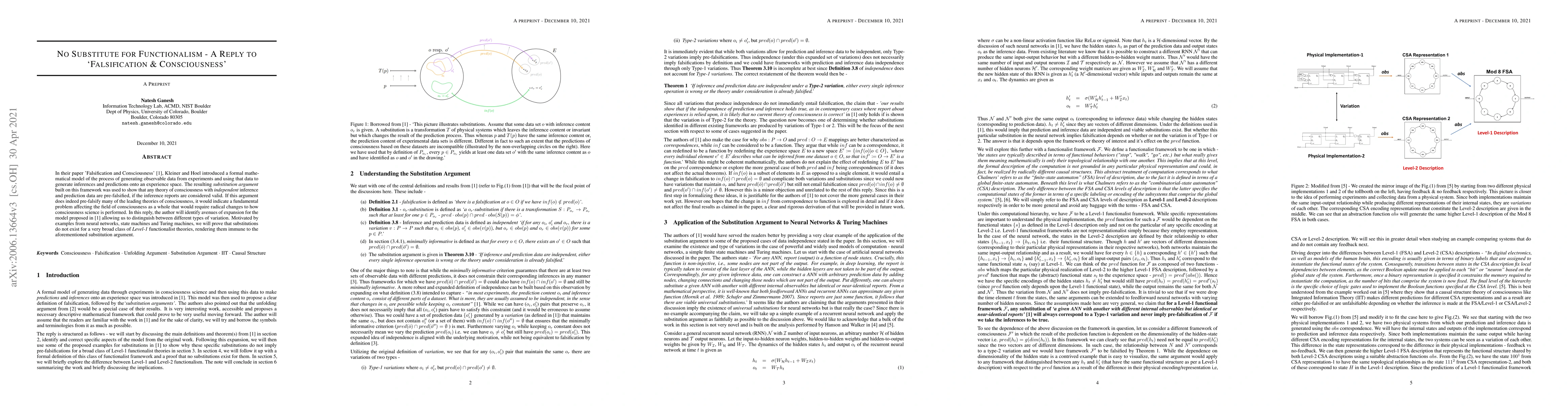 In their paper 'Falsification and Consciousness' [1], Kleiner and Hoel introduced a formal mathematical model of the process of generating observable data from experiments and using that data to generate inferences and predictions onto an experience space. The resulting substitution argument built on this framework was used to show that any theory of consciousness with independent inference and prediction data are pre-falsified, if the inference reports are considered valid. If this argument does indeed pre-falsify many of the leading theories of consciousness, it would indicate a fundamental problem affecting the field of consciousness as a whole that would require radical changes to how consciousness science is performed. In this reply, the author will identify avenues of expansion for the model proposed in [1], allowing us to distinguish between different types of variation. Motivated by examples from neural networks, state machines and Turing machines, we will prove that substitutions do not exist for a very broad class of Level-1 functionalist theories, rendering them immune to the aforementioned substitution argument.
