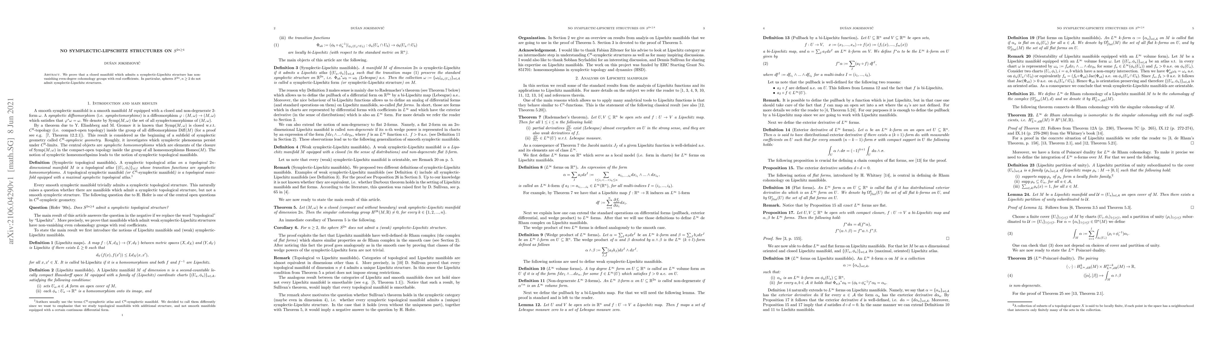 We prove that a closed manifold which admits a symplectic-Lipschitz structure has non-vanishing even-degree cohomology groups with real coefficients. In particular, spheres $S^{2n}, n \geq 2$ do not admit symplectic-Lipschitz structures.