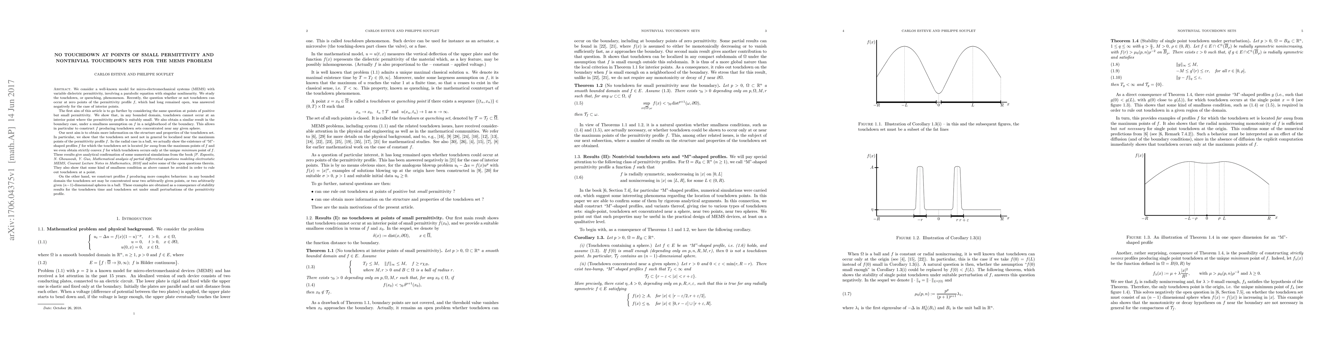 Researchers studied touchdown behavior in micro-electromechanical systems (MEMS) with variable dielectric permittivity, finding that it cannot occur at points of small permittivity and may concentrate near two arbitrary points or spheres in a bounded domain.