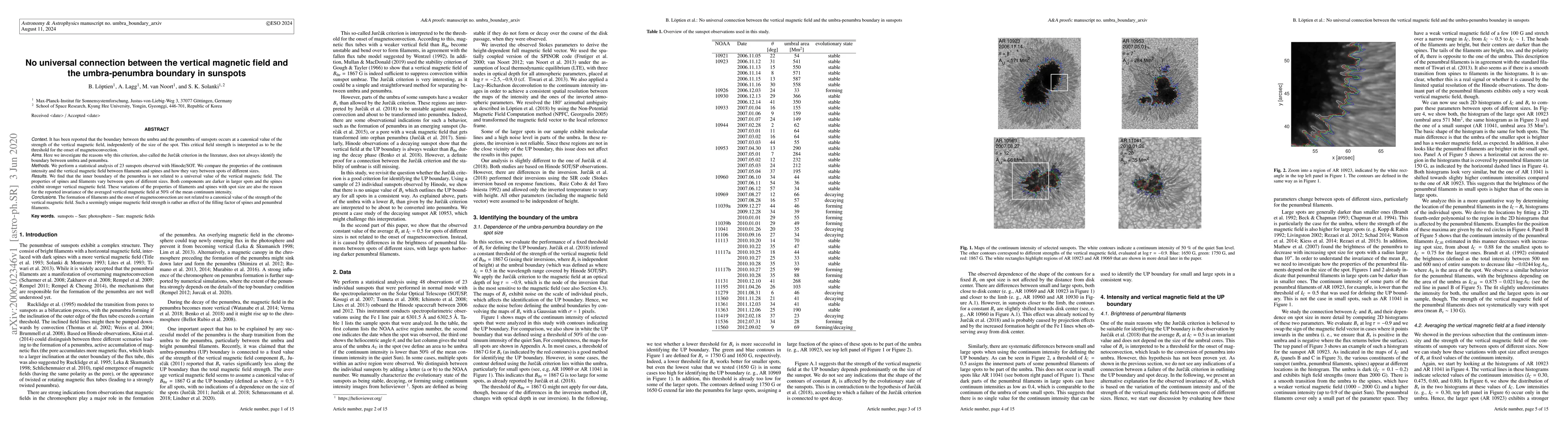 Context. It has been reported that the boundary between the umbra and the penumbra of sunspots occurs at a canonical value of the strength of the vertical magnetic field, independently of the size of the spot. This critical field strength is interpreted as to be the threshold for the onset of magnetoconvection. Aims. Here we investigate the reasons why this criterion, also called the Jur\v{c}\'ak criterion in the literature, does not always identify the boundary between umbra and penumbra. Methods. We perform a statistical analysis of 23 sunspots observed with Hinode/SOT. We compare the properties of the continuum intensity and the vertical magnetic field between filaments and spines and how they vary between spots of different sizes. Results. We find that the inner boundary of the penumbra is not related to a universal value of the vertical magnetic field. The properties of spines and filaments vary between spots of different sizes. Both components are darker in larger spots and the spines exhibit stronger vertical magnetic field. These variations of the properties of filaments and spines with spot size are also the reason for the reported invariance of the averaged vertical magnetic field at 50% of the mean continuum intensity. Conclusions. The formation of filaments and the onset of magnetoconvection are not related to a canonical value of the strength of the vertical magnetic field. Such a seemingly unique magnetic field strength is rather an effect of the filling factor of spines and penumbral filaments.