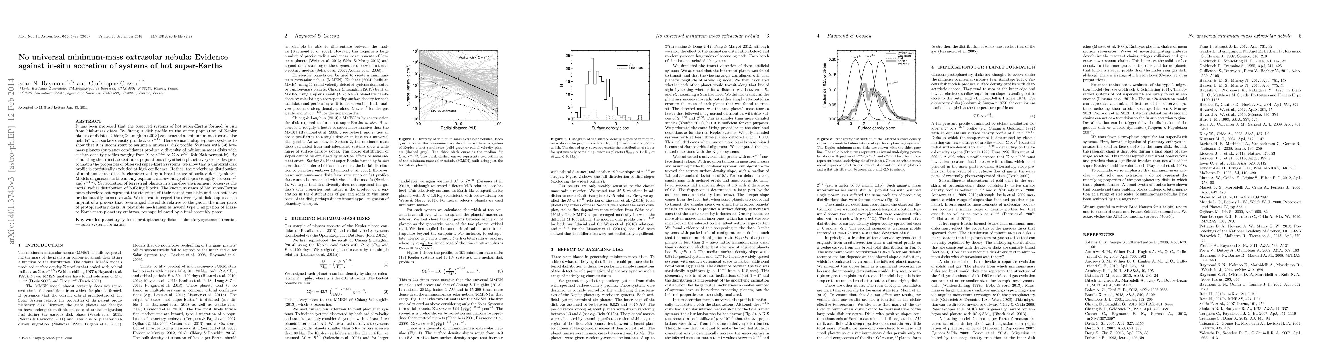This paper argues that the formation of hot super-Earths via in-situ accretion from high-mass disks is unlikely due to the diversity in disk profiles observed in multiple-planet systems. The study finds that the minimum-mass extrasolar nebula cannot have a universal profile, suggesting instead a broad range of surface density slopes, inconsistent with models of gaseous disks.