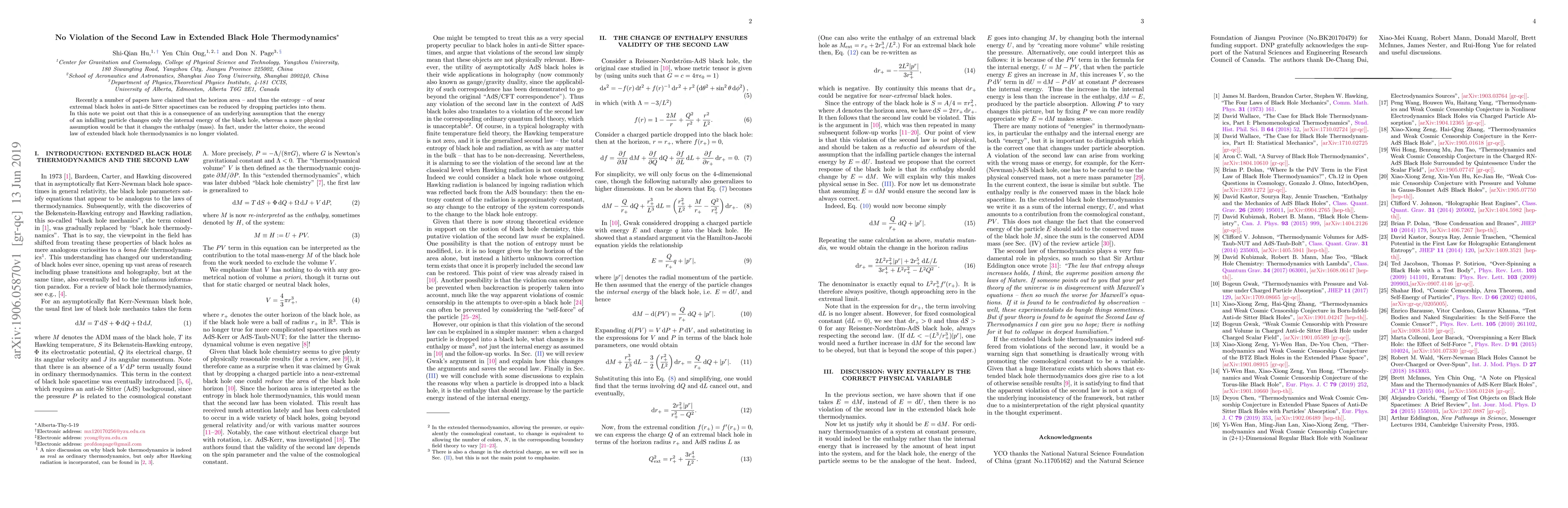 This paper argues that claims of entropy reduction in near-extremal black holes via particle infall are flawed due to an incorrect assumption about energy transfer. Correctly accounting for the enthalpy change maintains adherence to the second law of extended black hole thermodynamics.