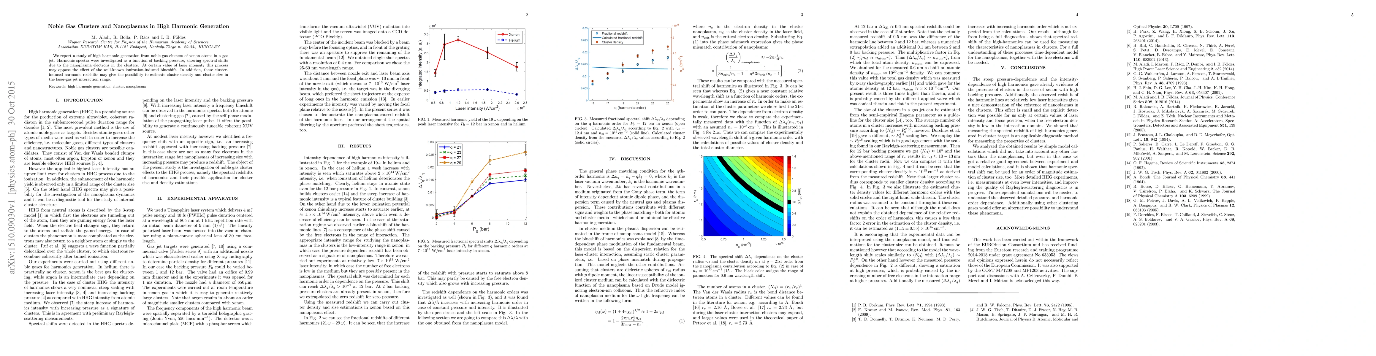 This study investigates high harmonic generation from xenon noble gas clusters, revealing spectral shifts due to nanoplasma electrons. At specific laser intensities, the process can counteract the usual ionization-induced blueshift, potentially allowing estimation of cluster density and size in laser-gas interactions.