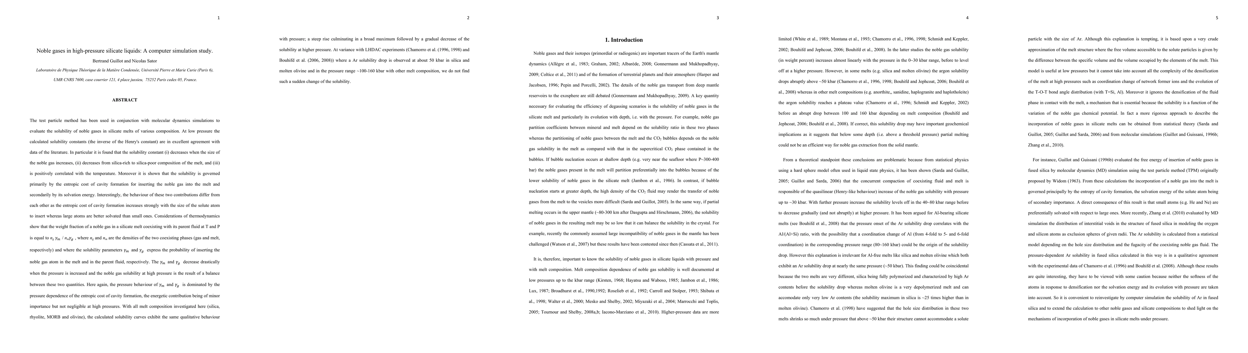 A combination of experimental and computational methods were used to study the solubility of rare gases in silicate melts.