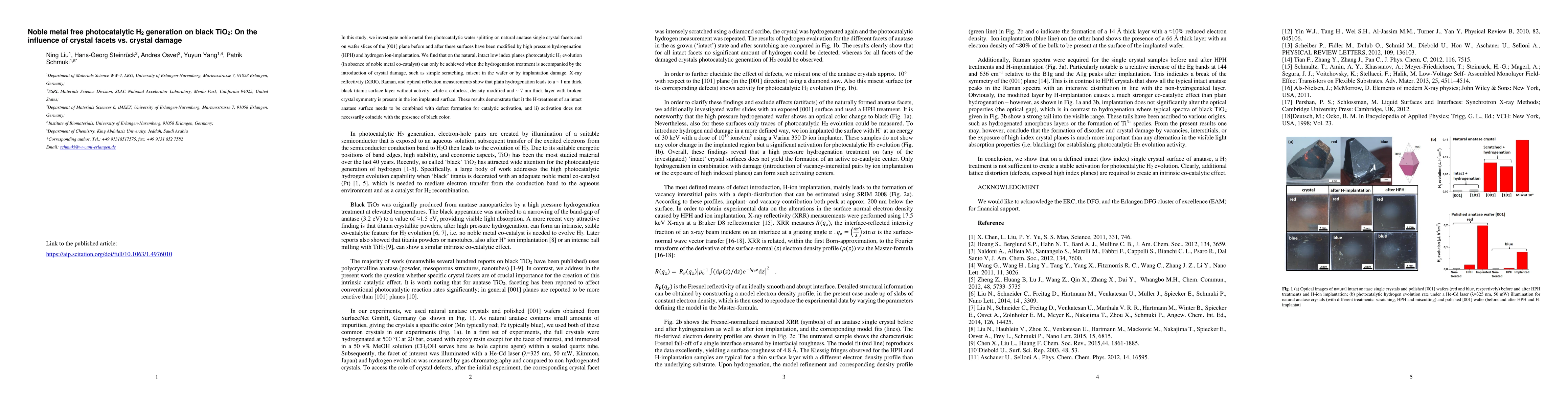This study explores noble metal-free photocatalytic hydrogen generation on black TiO$_2$, revealing that intact anatase surfaces require crystal damage for activation, while hydrogenation alone forms an inactive black layer. Defect formation via scratching, miscut, or implantation is crucial for photocatalytic activity.